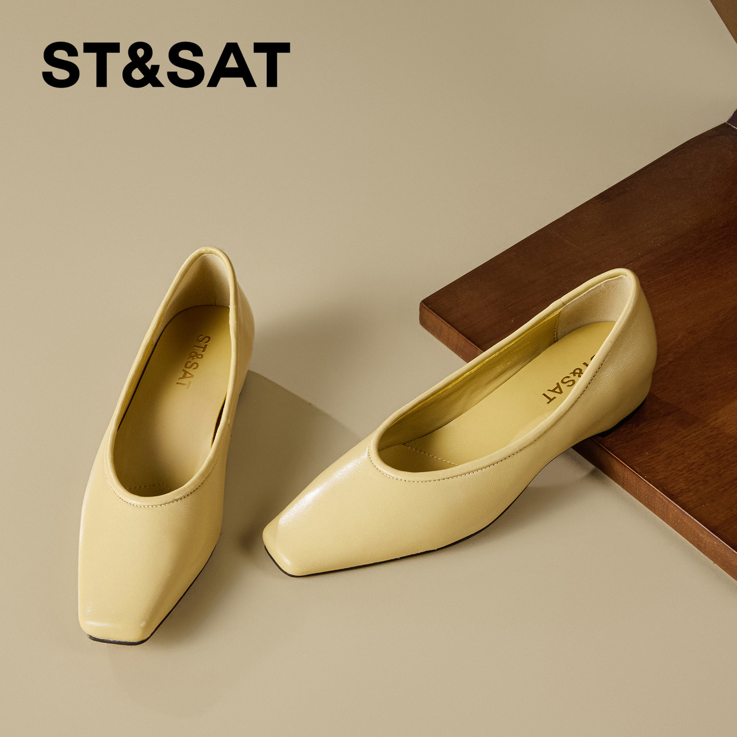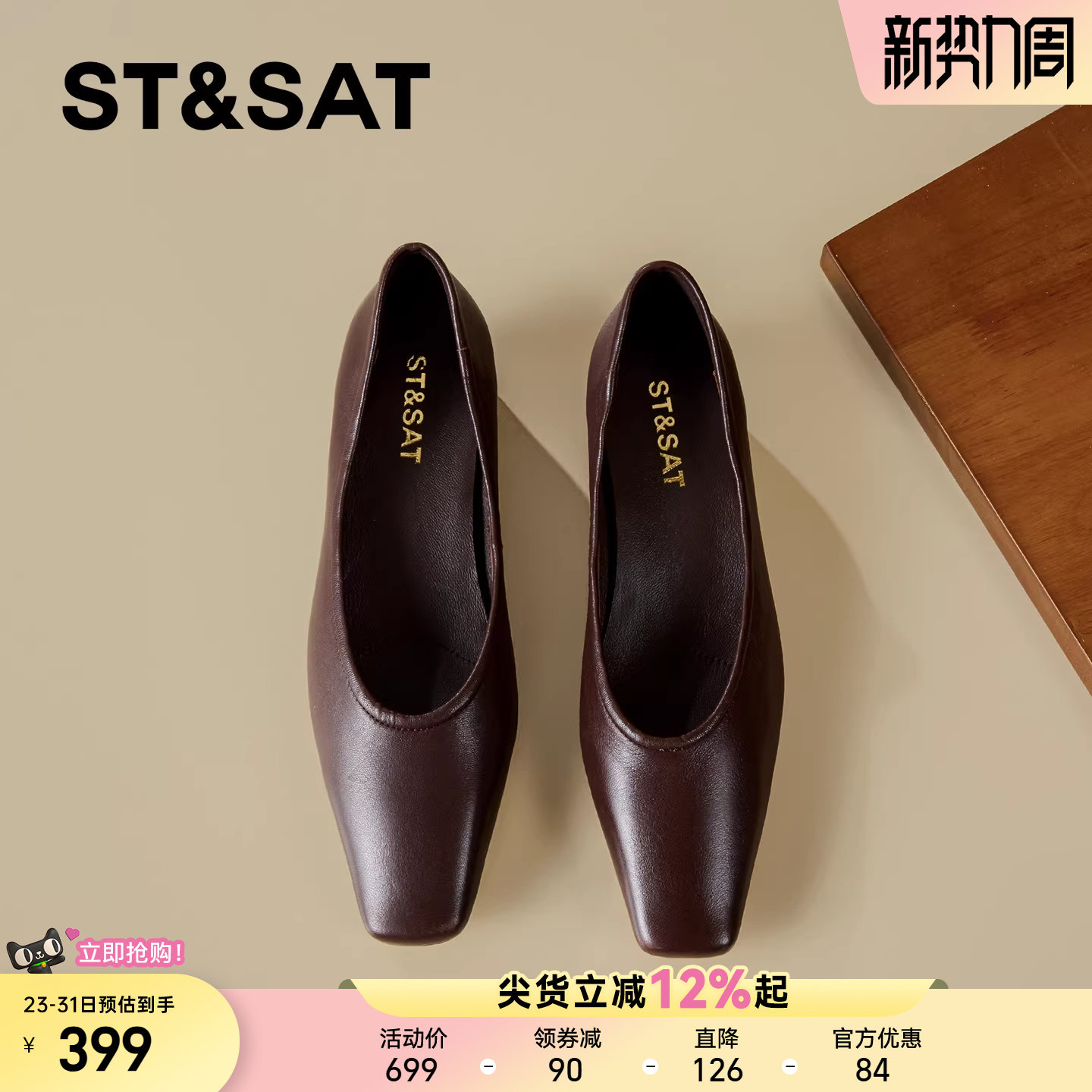 星期六法式真皮方头坡跟浅口单鞋女2026春季新款内增高轻便一脚蹬