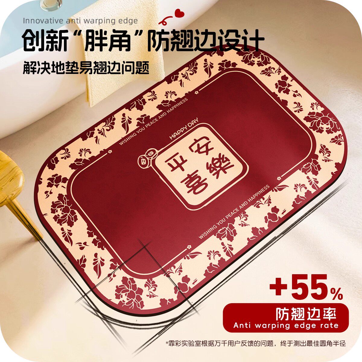 圣卡罗帝卡通婚庆地垫卫生间浴室防滑踩脚垫子入户进门口耐脏地毯