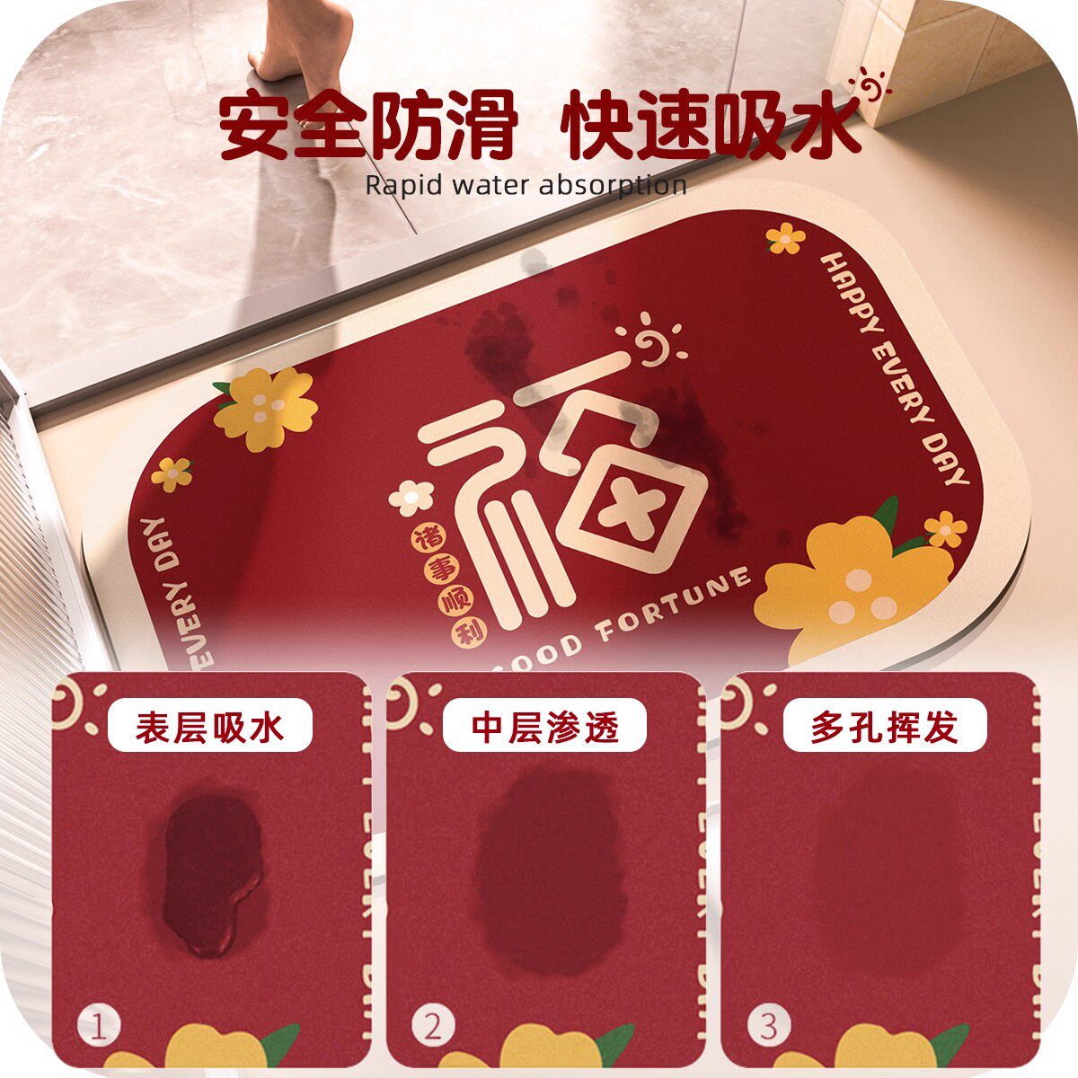 地垫卫生间吸水浴室门口防滑垫厨房新年硅藻泥厕所脚垫子台面卫浴