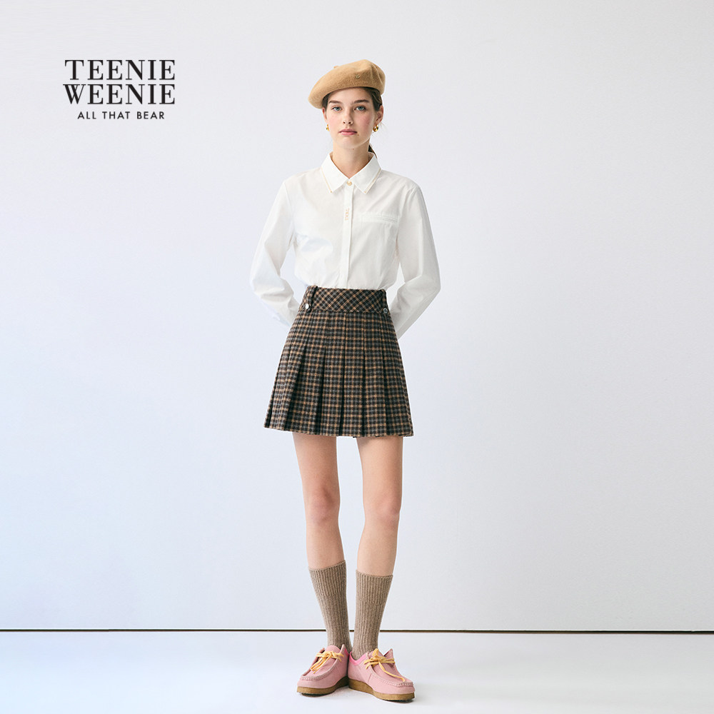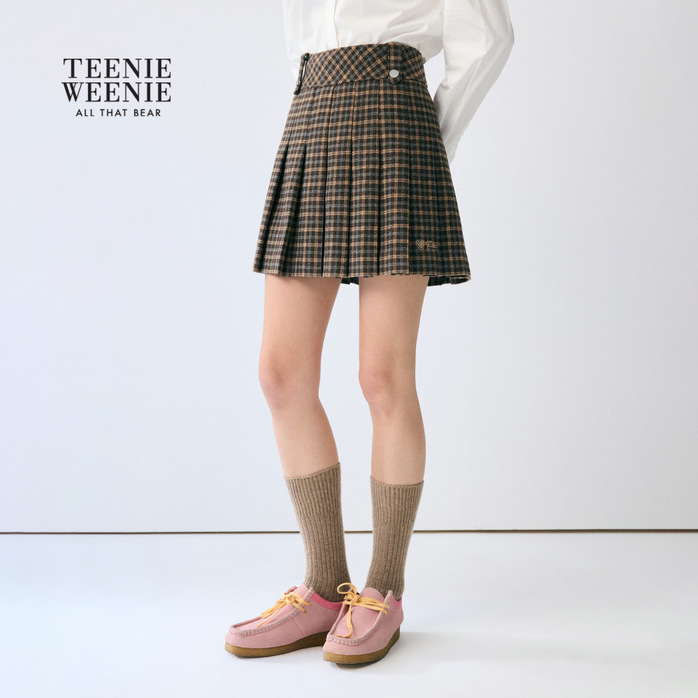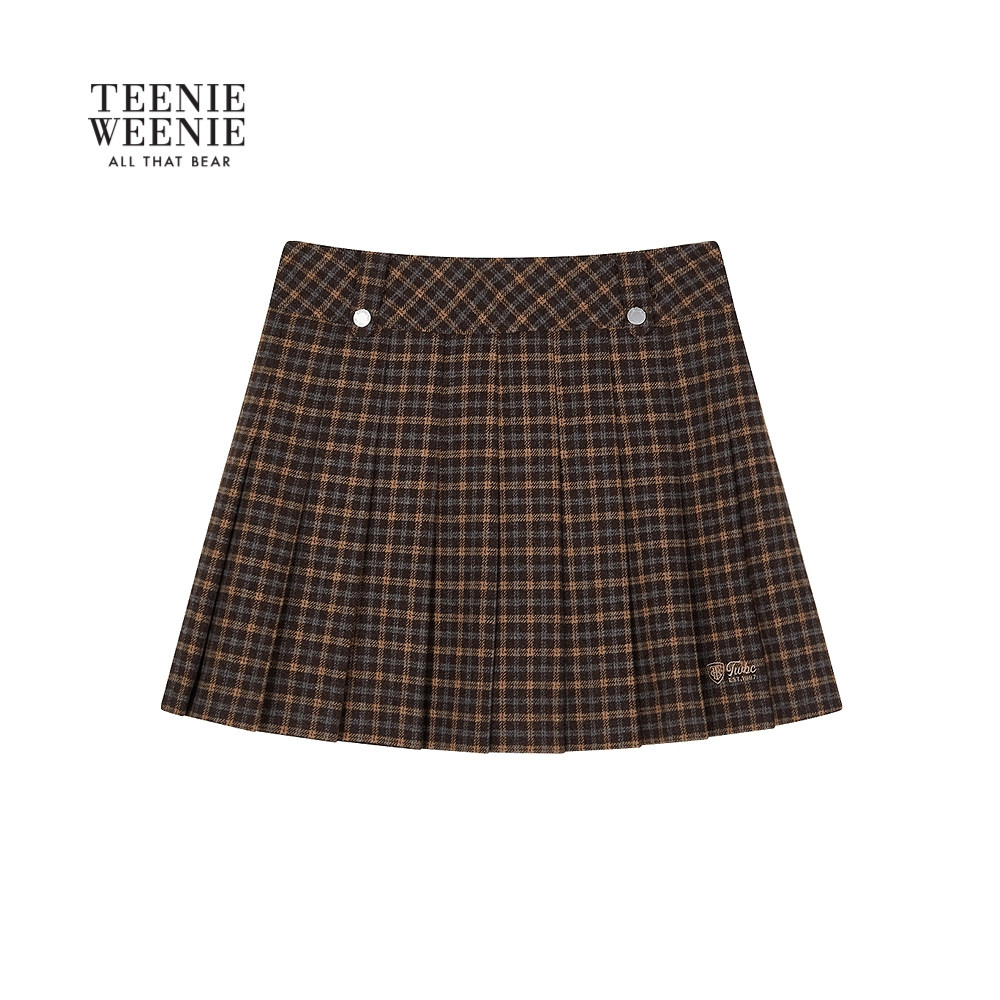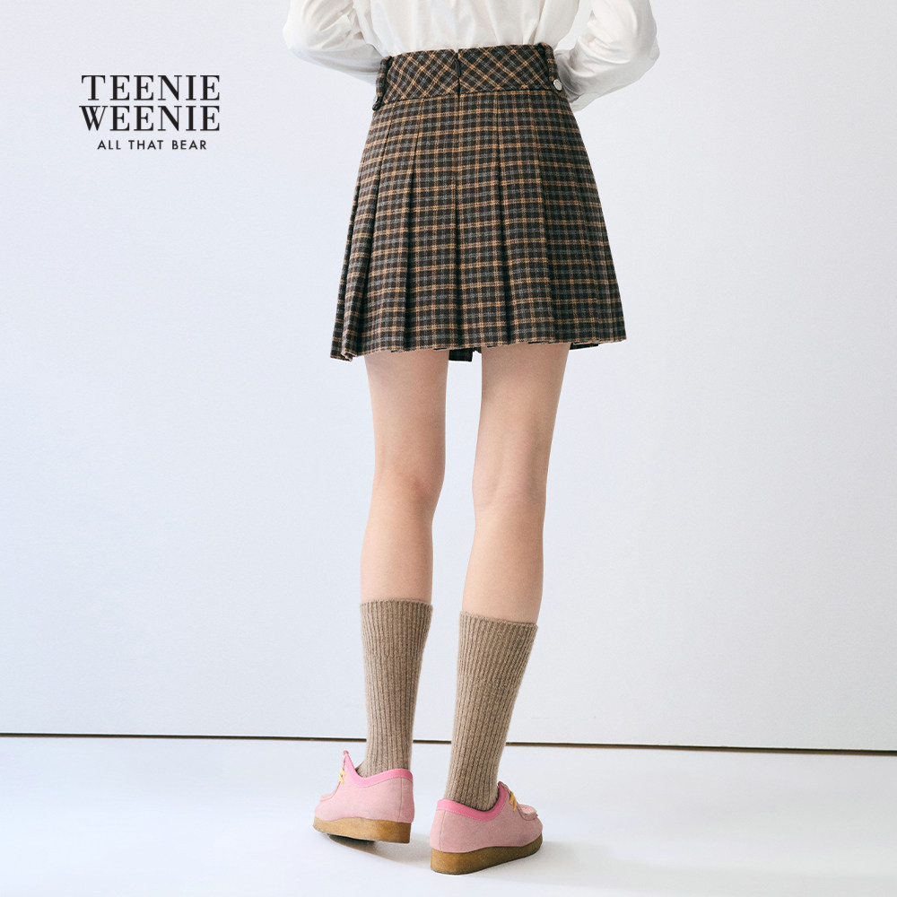 TeenieWeenie小熊女装半身裙2025冬季新款复古休闲宽松格子A字裙