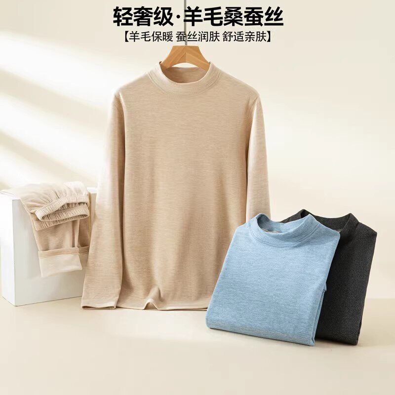 兰帕媛无痕保暖内衣套装双面磨毛绒羊毛蚕丝紧身男女士大人冬季6