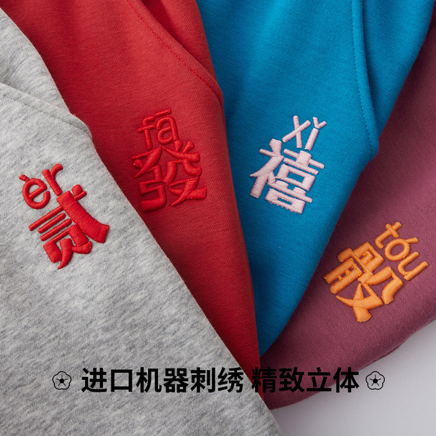 Q21儿童卫衣套装男女童新年款国潮刺绣套头圆领长袖加绒拜年服冬