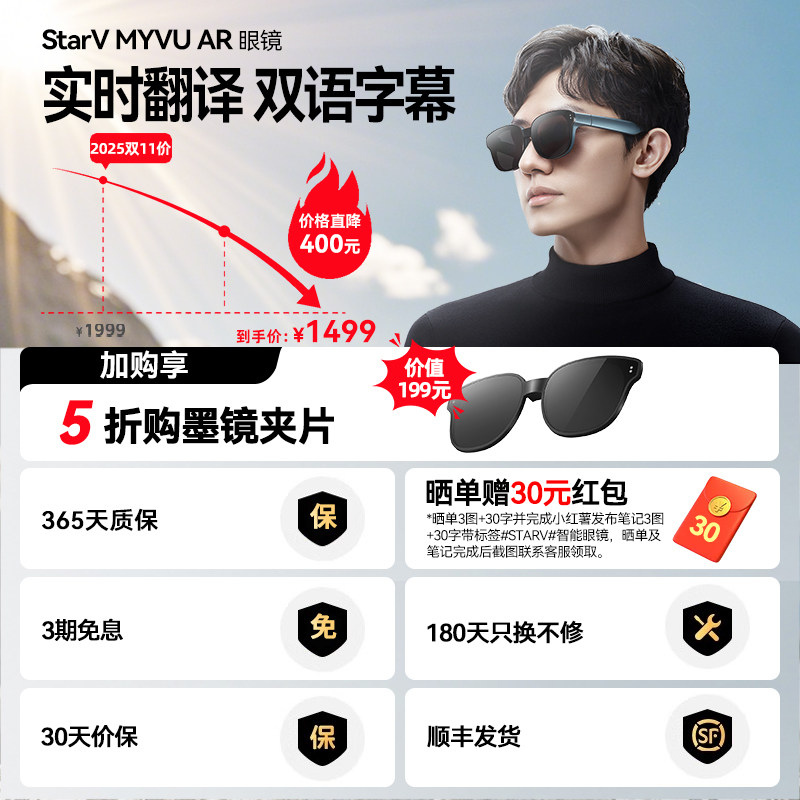 【ai智能眼镜提词】StarV MYVU翻译眼镜提词导航星纪魅族ar智能眼镜演讲提词器实时翻译眼镜字幕翻译官ai眼镜