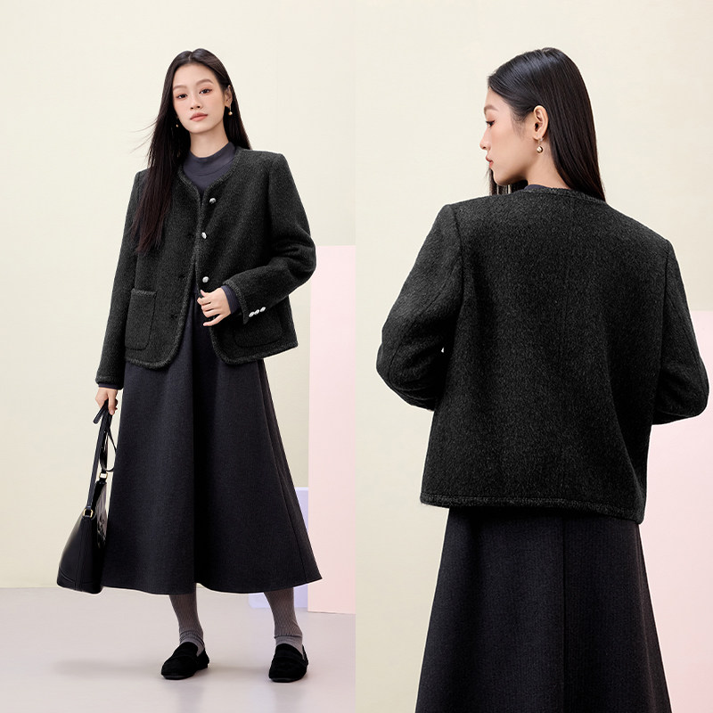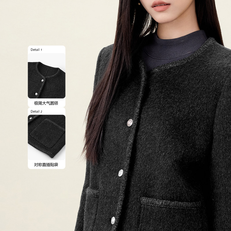 爱居兔小香风双面呢大衣女冬季新款高级感短款外套
