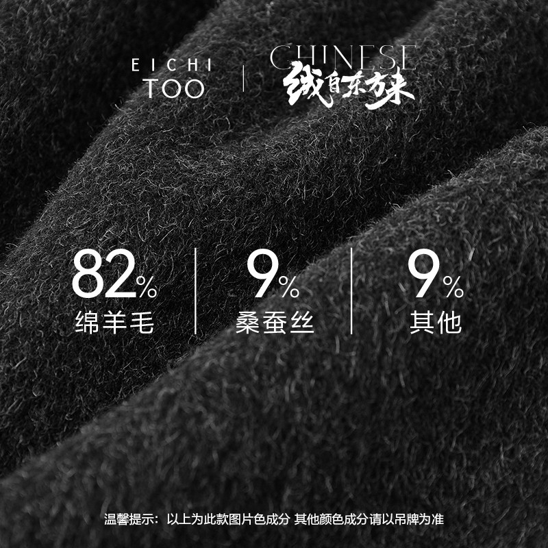 RUISHI芮时重磅驼绒桑蚕丝羊毛慵懒两穿领灰色毛呢大衣秋冬外套女