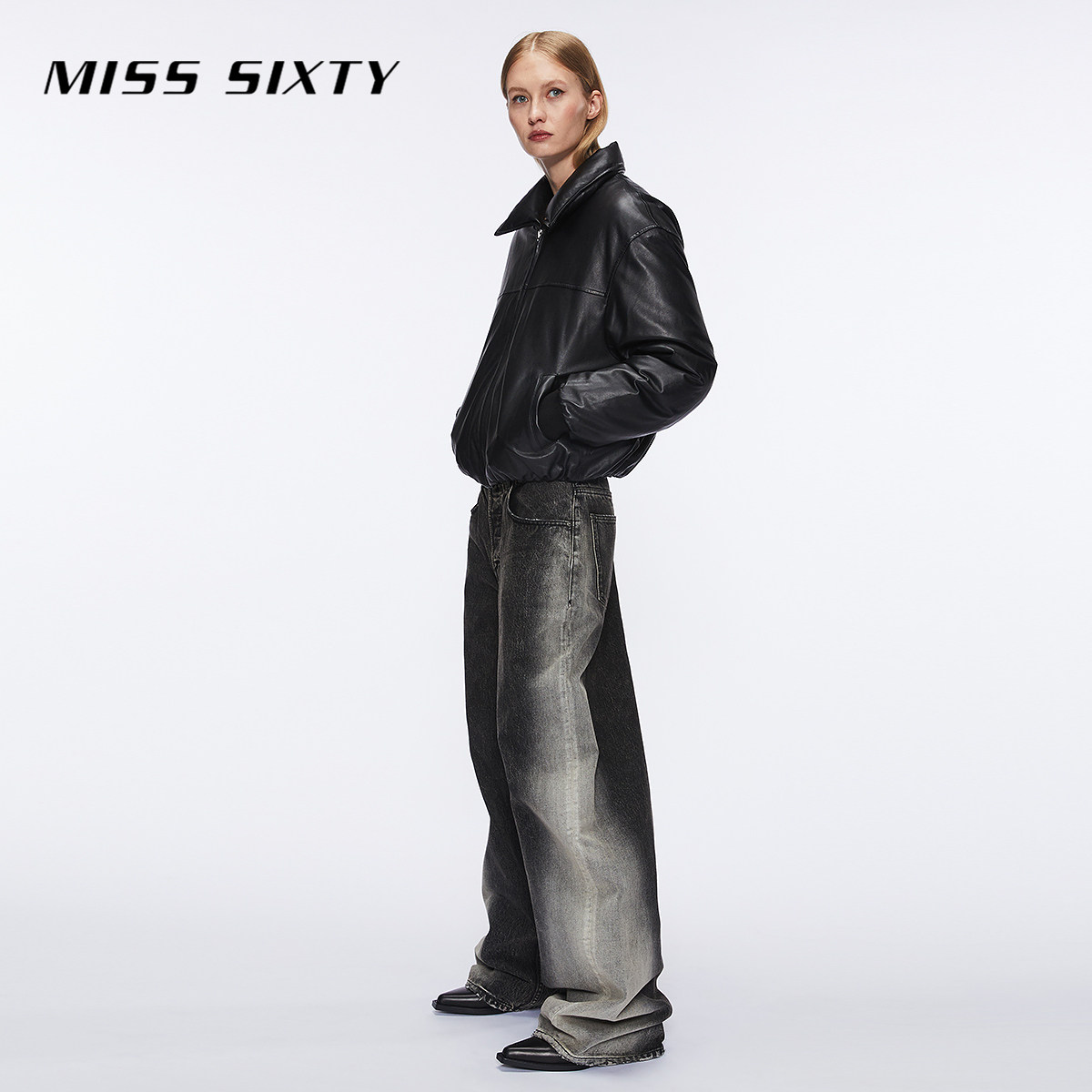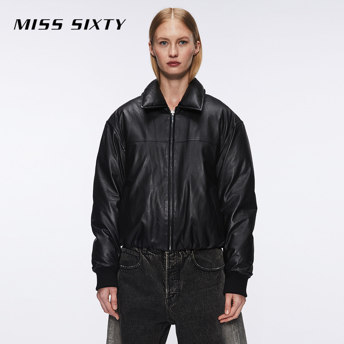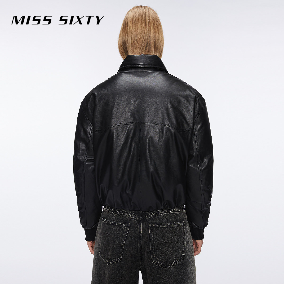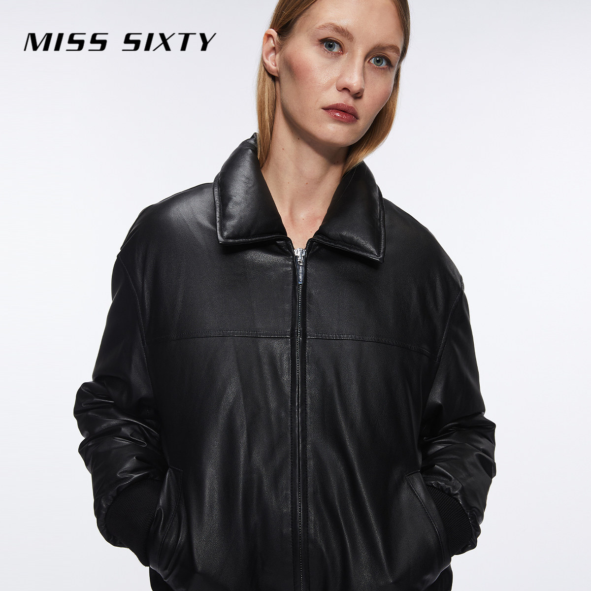 【杨幂同款】保暖90鸭绒Miss Sixty皮衣真皮羽绒服外套女羊皮革