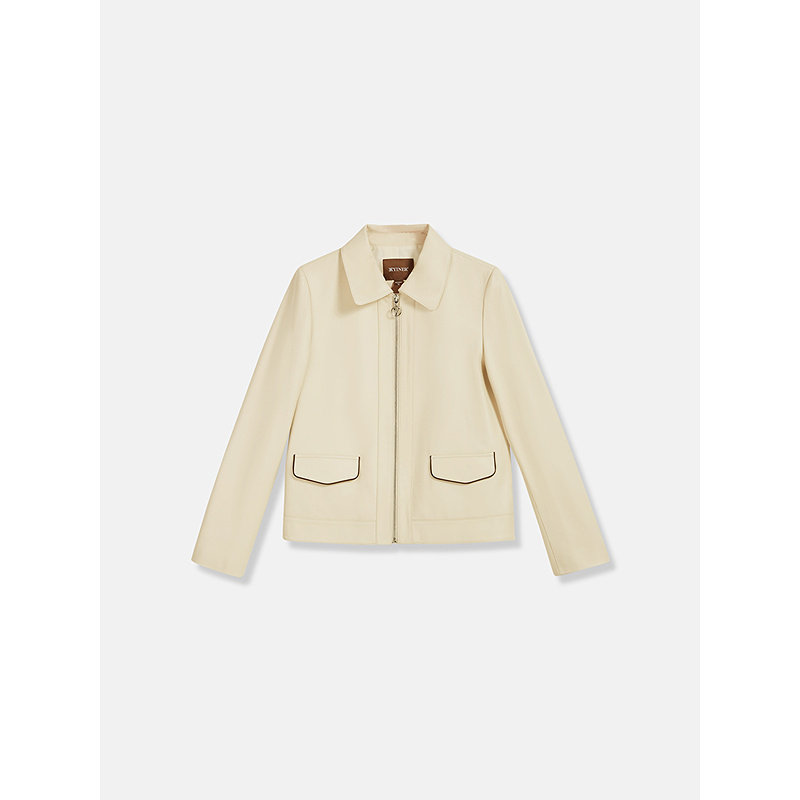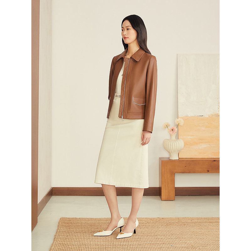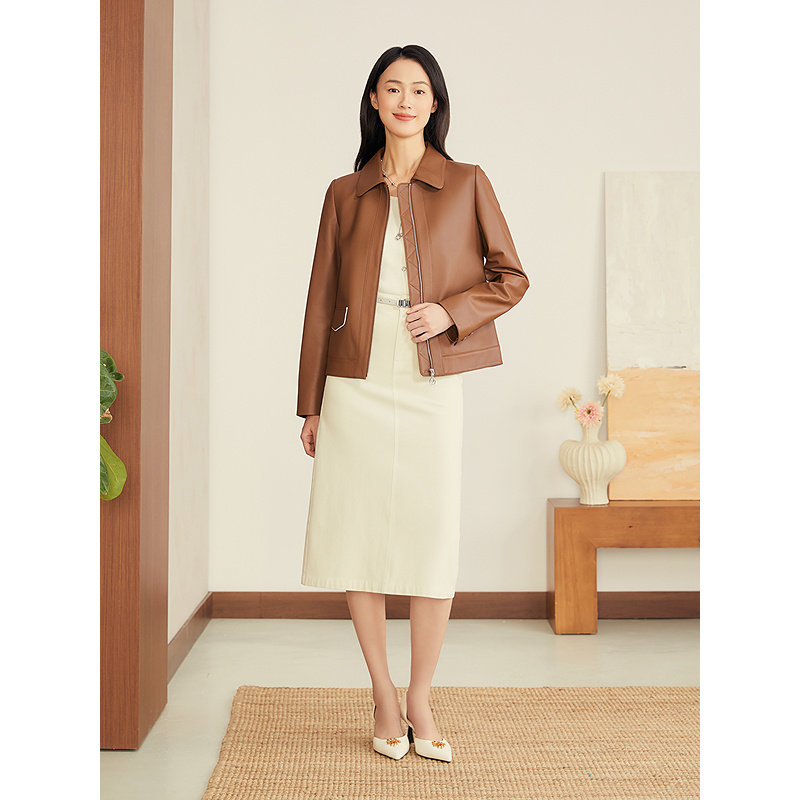 Eland衣恋皮衣女纯色带拉链长袖翻领外套2025冬季新款