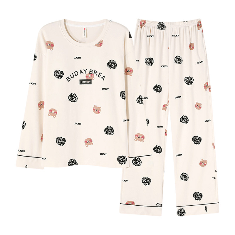安比斯情侣睡衣舒适纯棉秋季女长袖男女同款休闲家居服套装可出门