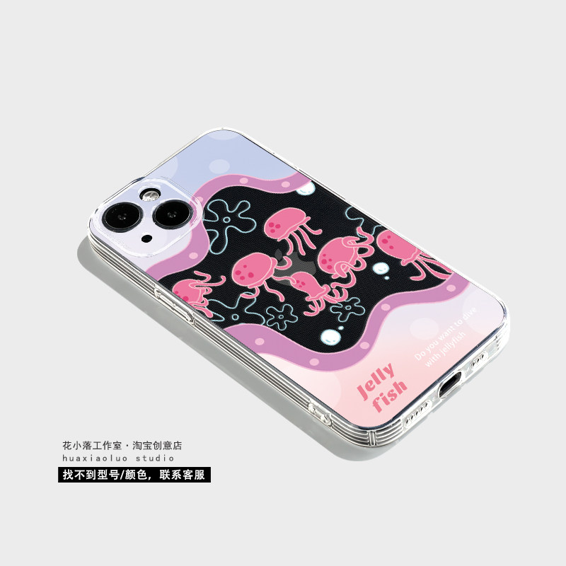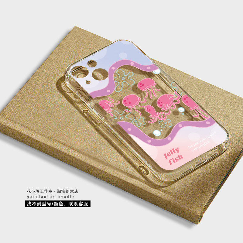 粉色水母~透明可爱卡通iPhone15promax苹果14小米13新款11华为mate60/p50适用nova12荣耀vivoS18少女心手机壳