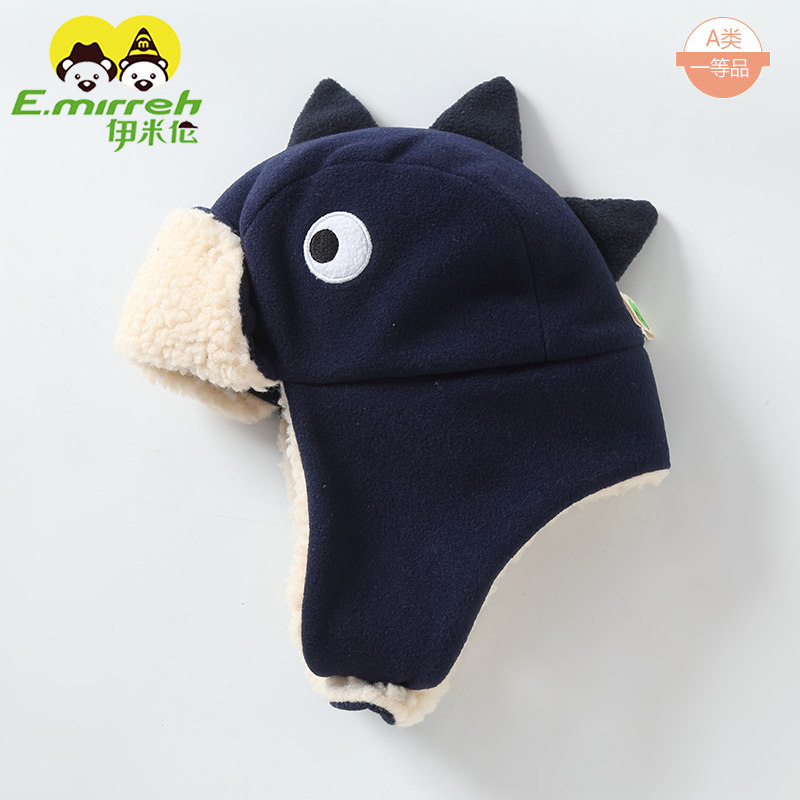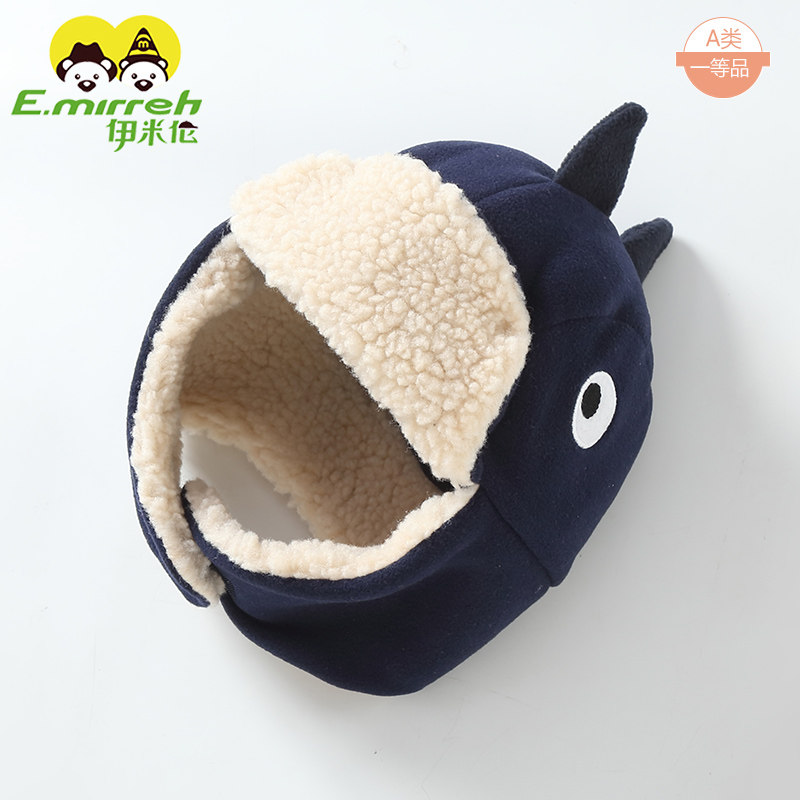 伊米伦婴儿帽子秋冬保暖男童护耳飞行帽新款鲨鱼造型儿童雷锋帽厚