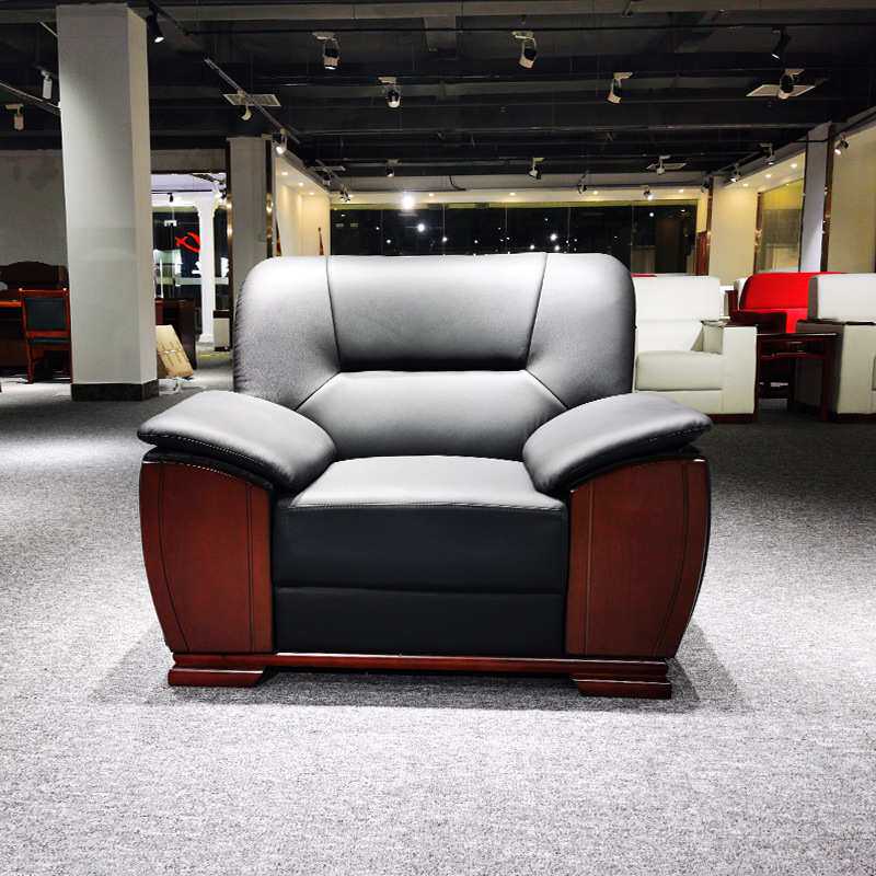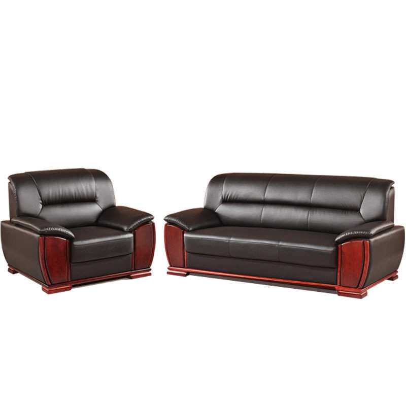 佛山厂家直销经理办公室皮艺商务接待黑色三人位办公沙发茶几组合