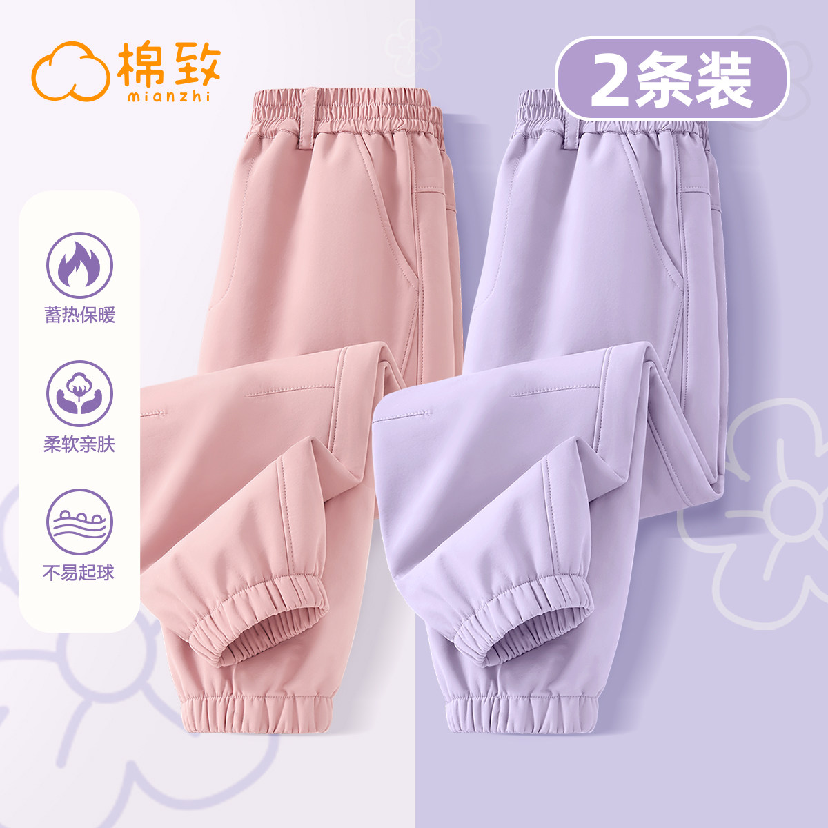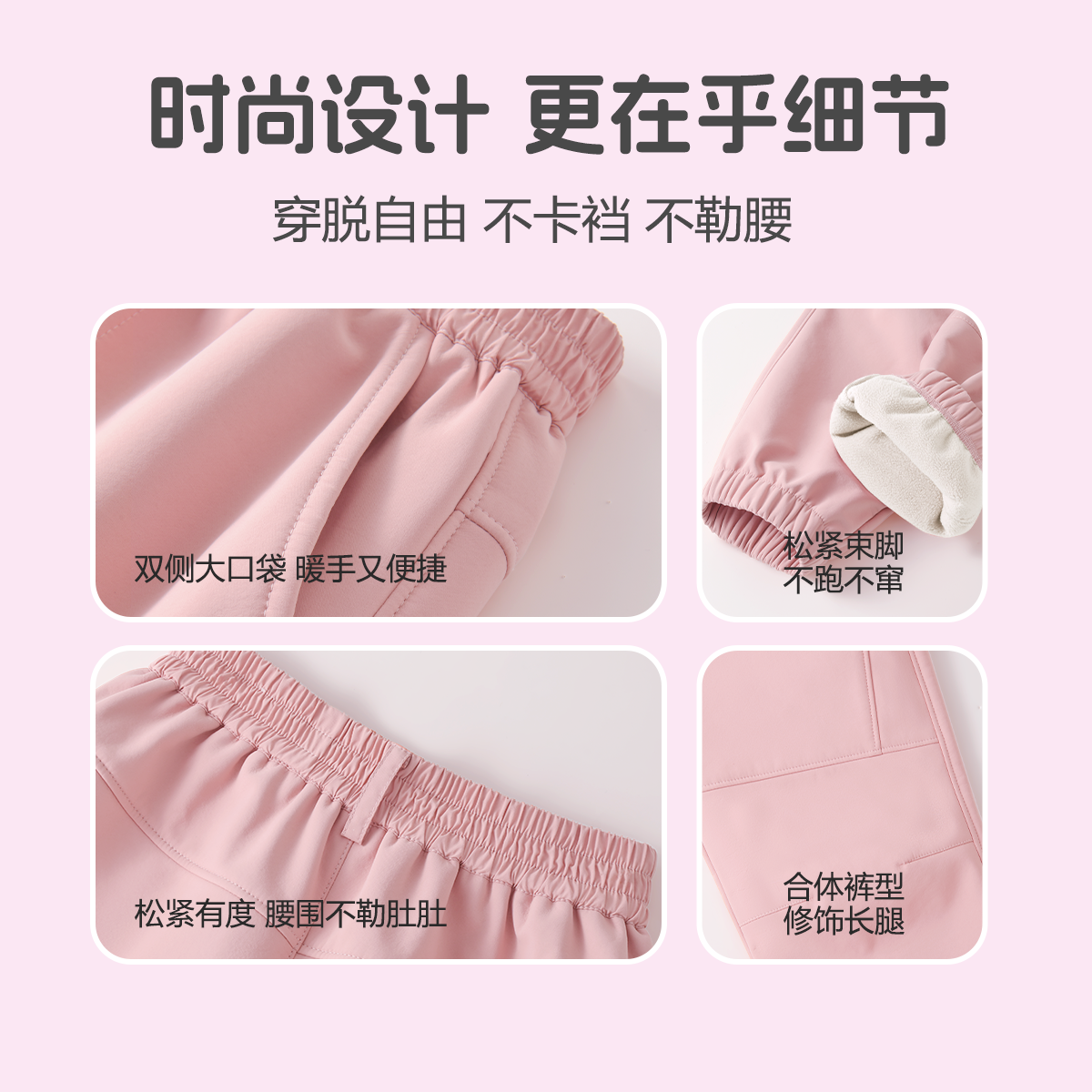 棉致女童加绒裤子秋冬防风加厚绒裤冬季一体绒儿童工装运动裤冬款