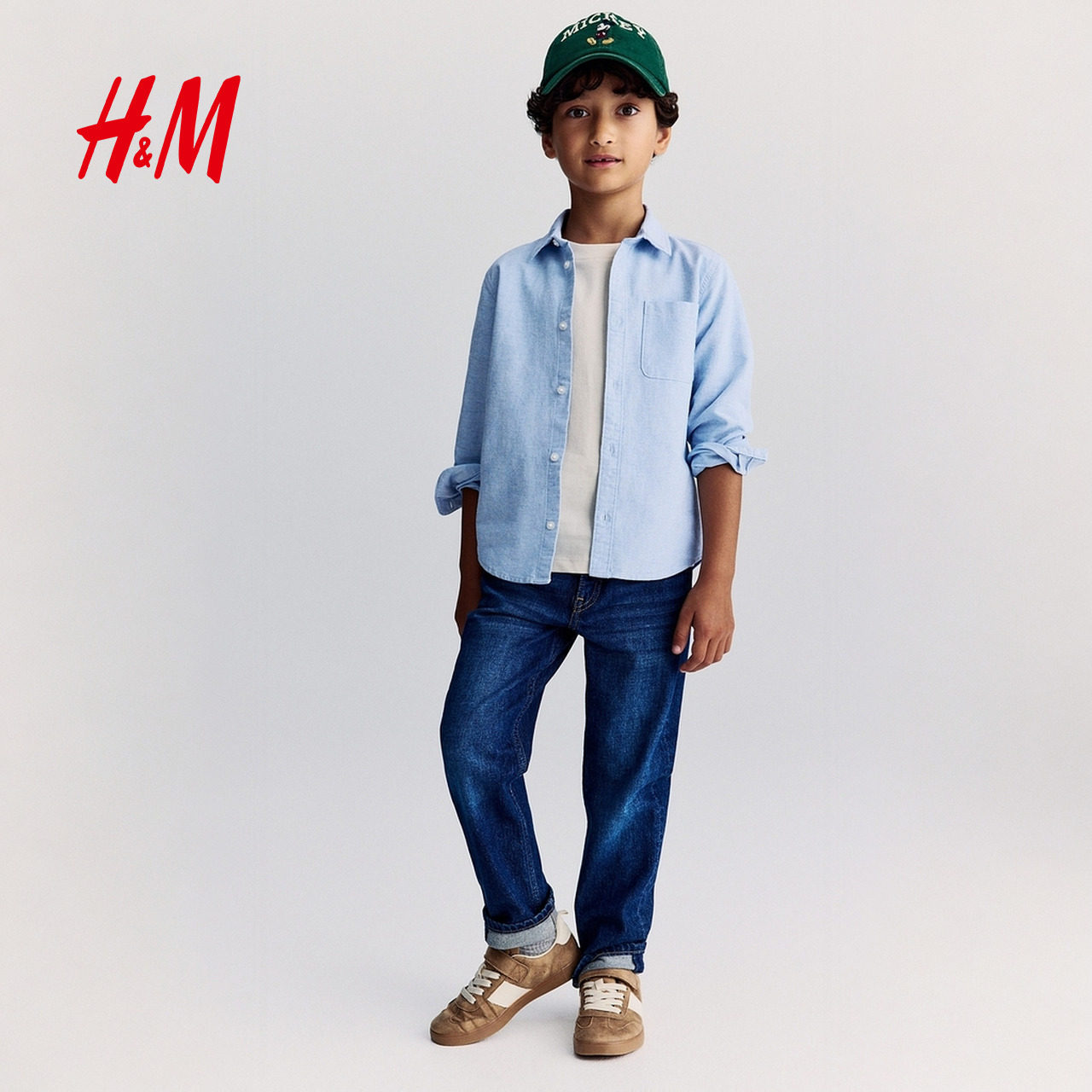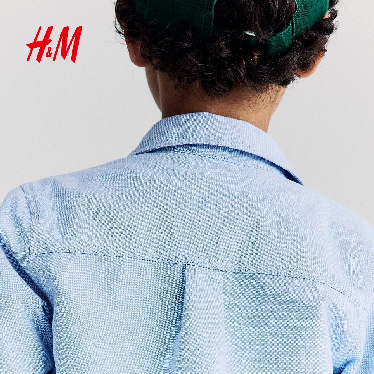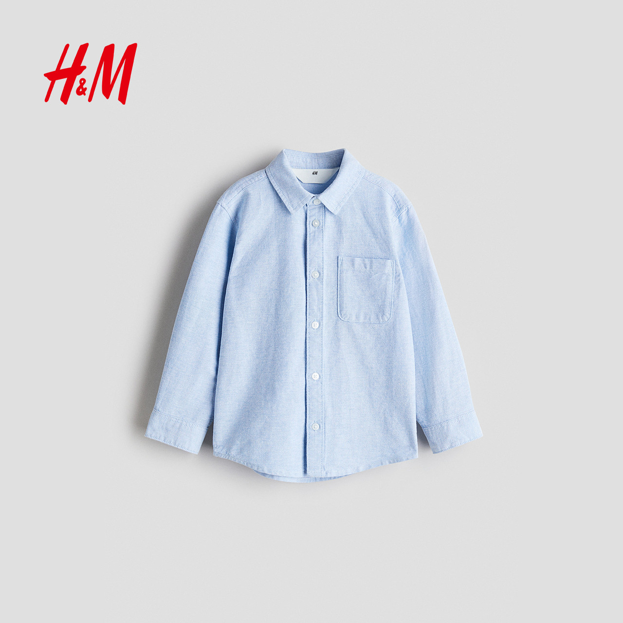 HM童装儿童男童衬衫春季长袖内搭衬衣翻领单排扣棉质上衣1302104