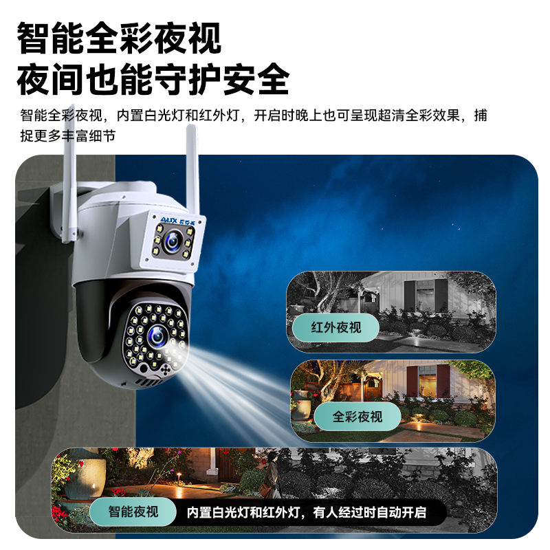 奥克斯摄像头监控器360度无死角家用远程无线室外4G高清夜视摄影