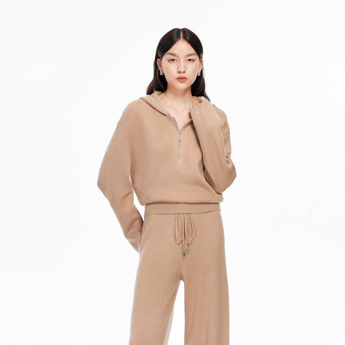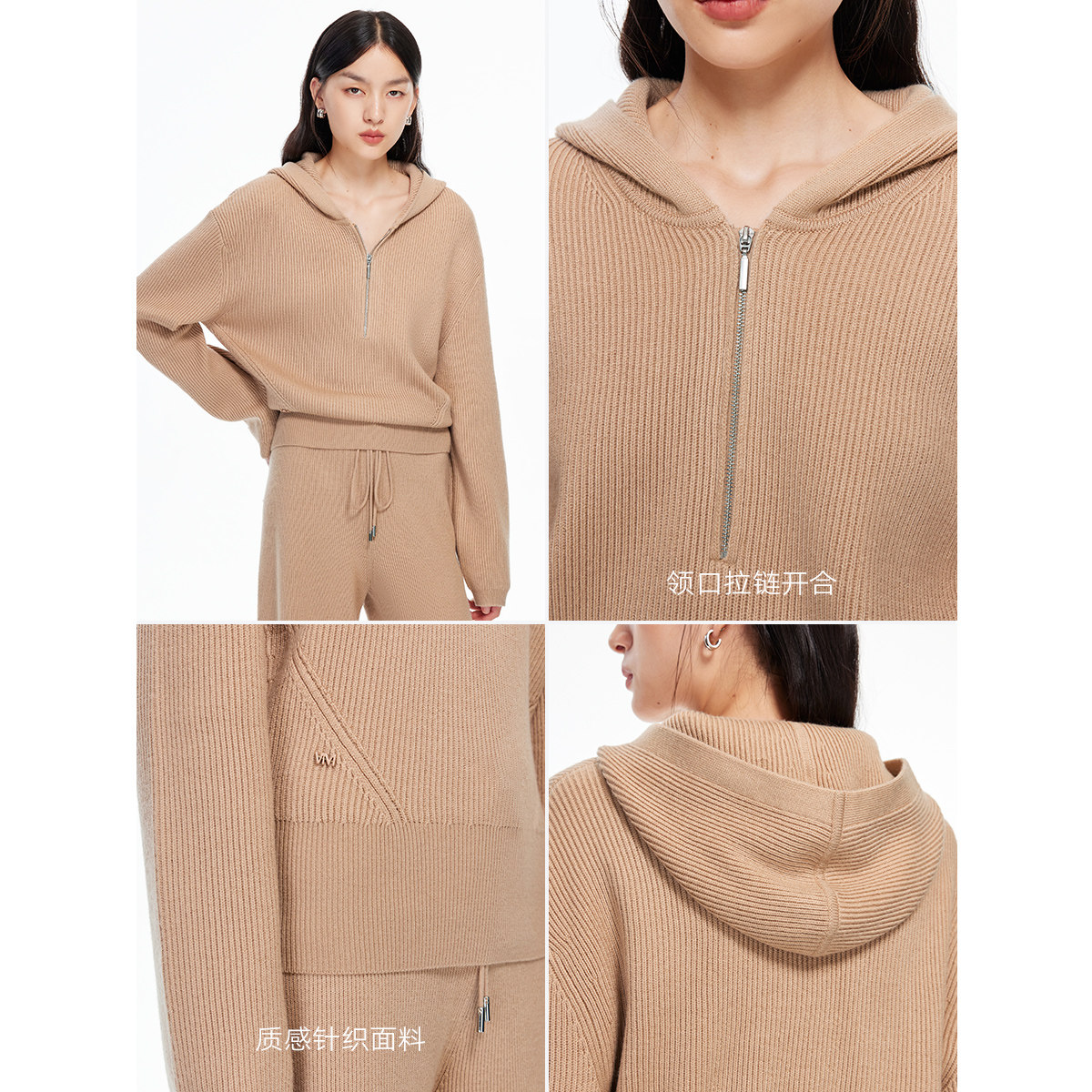 Vero Moda针织衫2025冬季新款含绵羊毛简约宽松连帽毛衣325413045