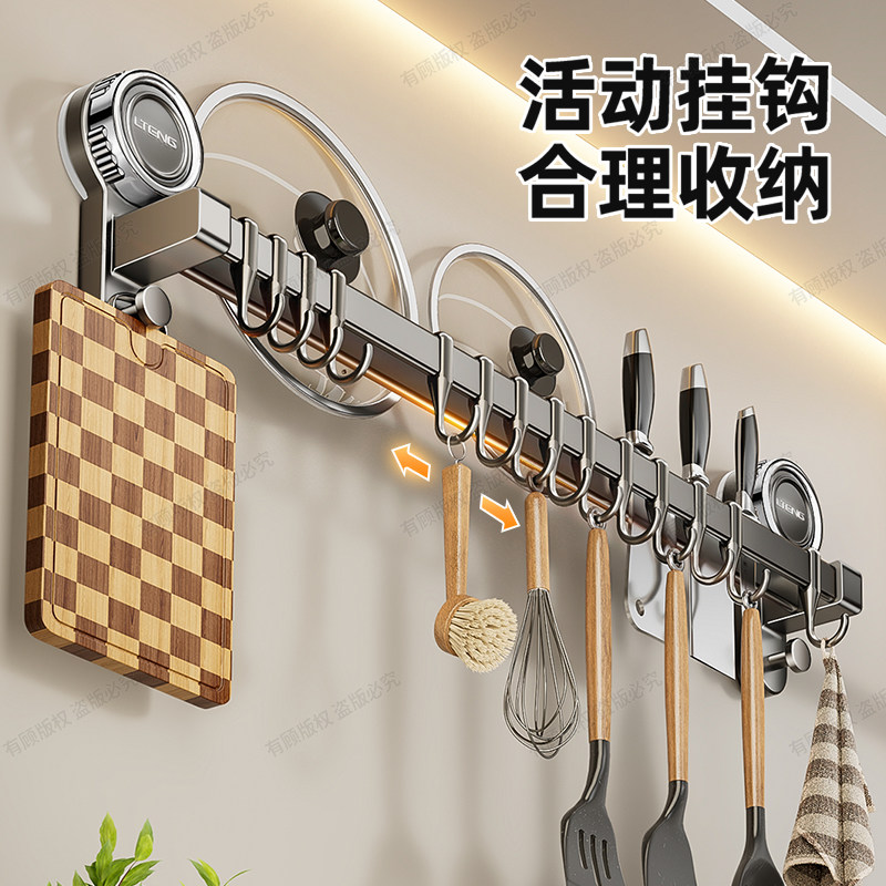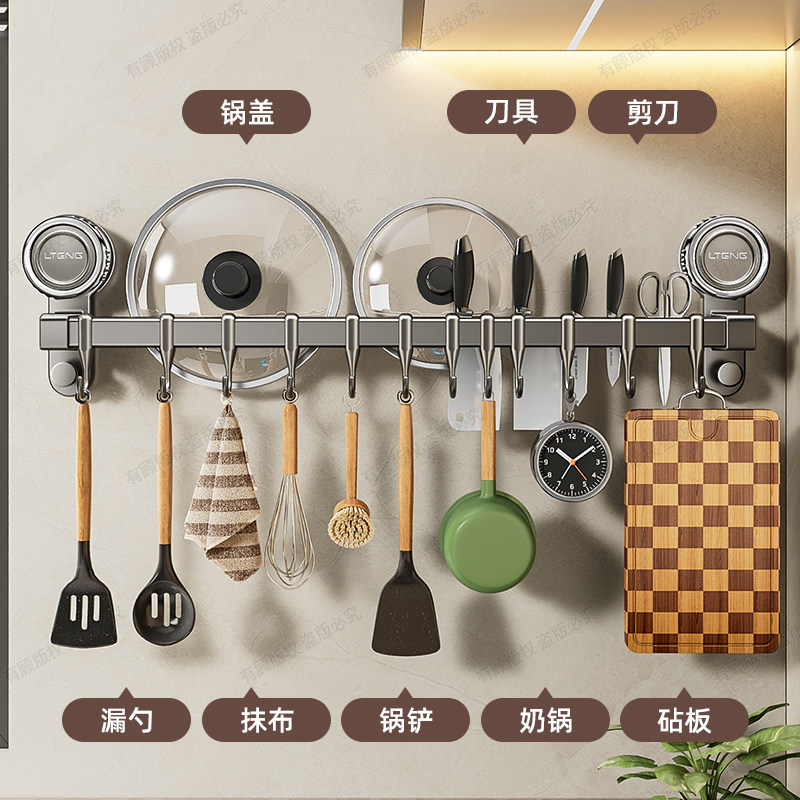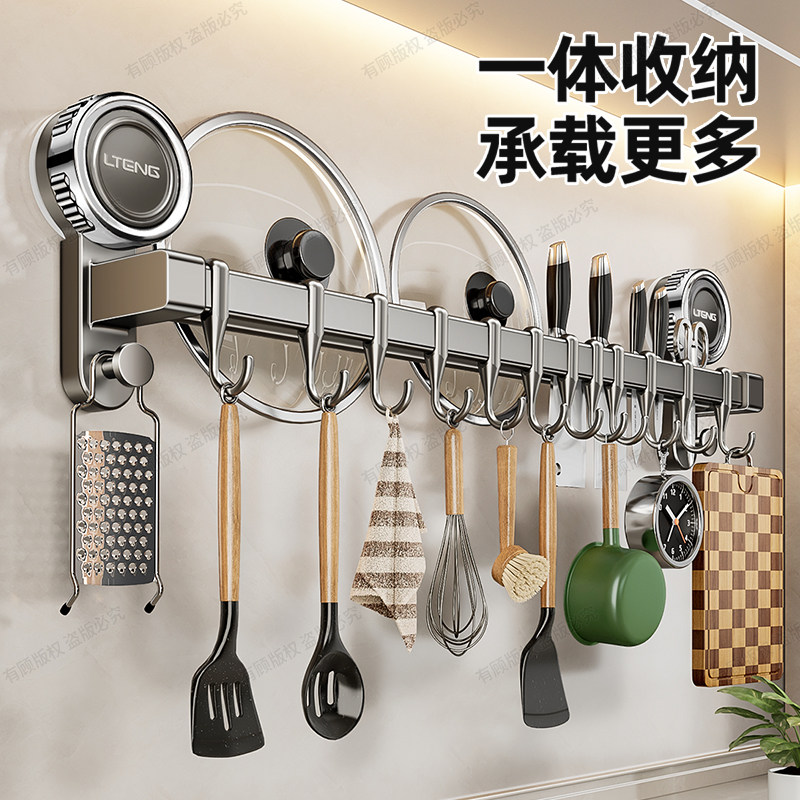 吸盘厨房挂钩免打孔多功能挂杆锅铲勺子刀具挂架壁挂式收纳架承重