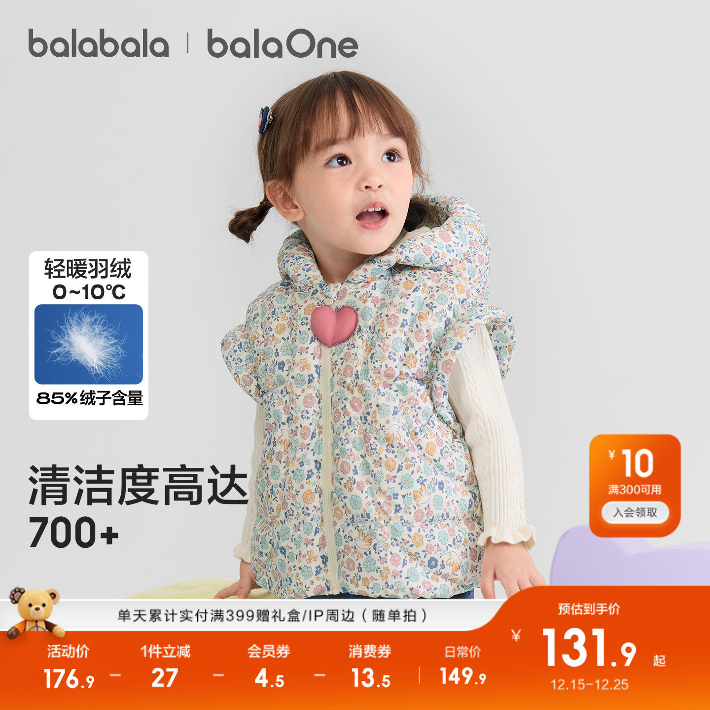 巴拉巴拉balaOne儿童羽绒马甲女童男童小童外套新款童装2025秋冬