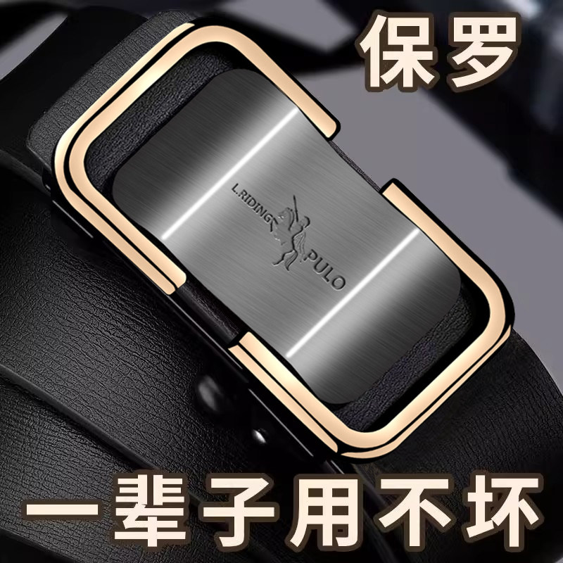 2025款保罗皮带男真皮自动扣纯牛皮腰带男商务休闲男士裤带正品