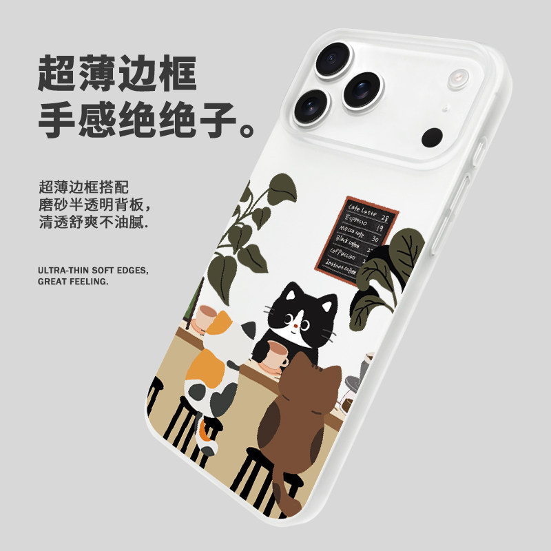 新款透黑手机壳 超薄磨砂壳 可爱咖啡馆猫猫
