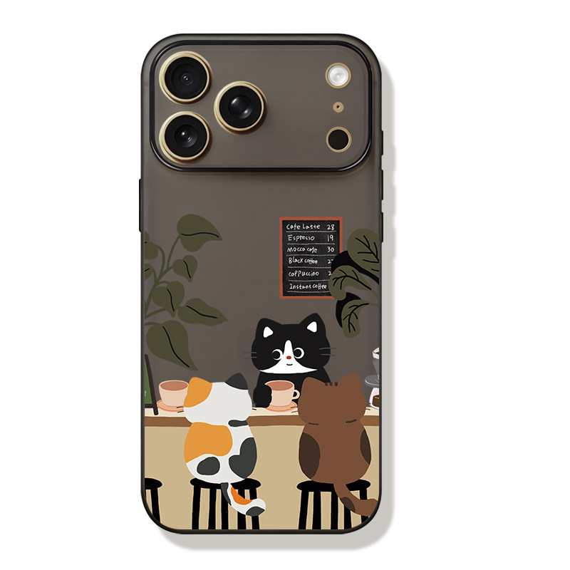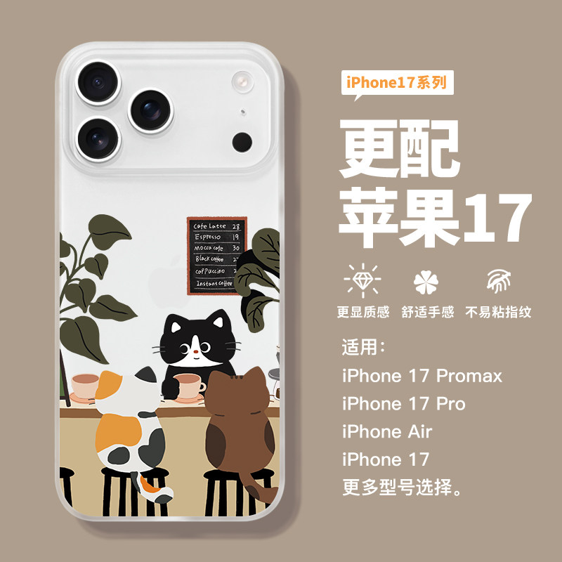 适用iPhone17Promax超薄磨砂壳17Pro透黑手机壳苹果16可爱咖啡馆猫猫15Pro简约Max高级感14全包13小众手机壳