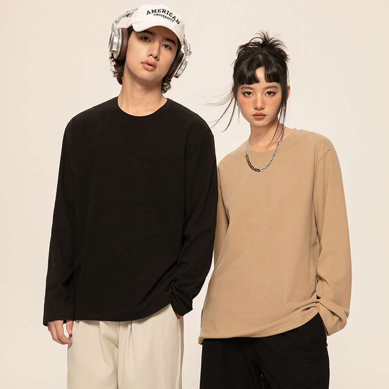 INS纯棉25韩国ins复古基础款纯色秋季打底衫内搭男女长袖T恤bf风