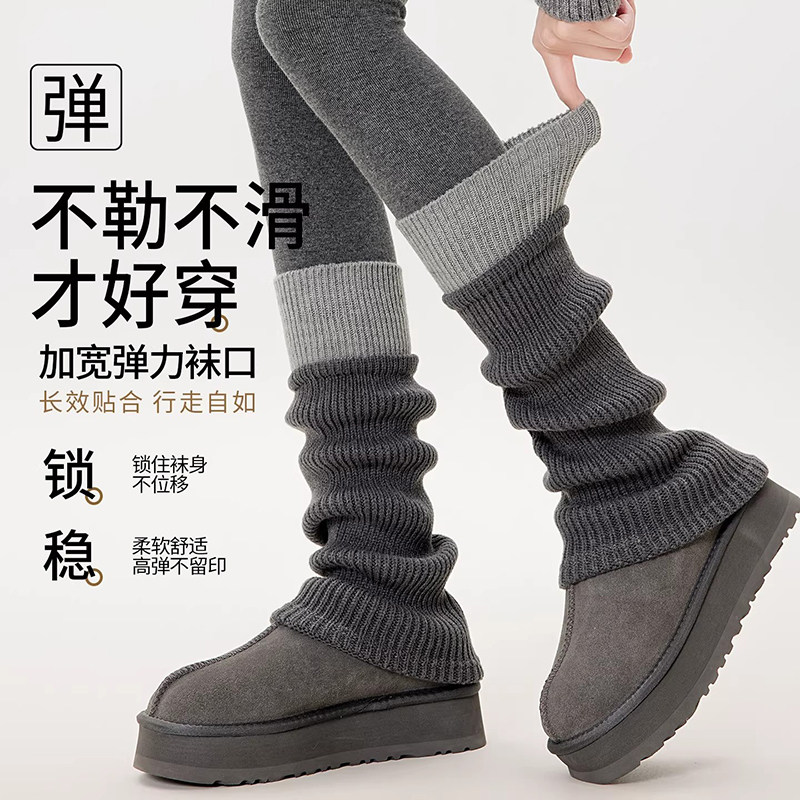 灰色y2k风针织袜套堆堆袜子女款冬季保暖长筒袜小腿袜腿套中筒袜