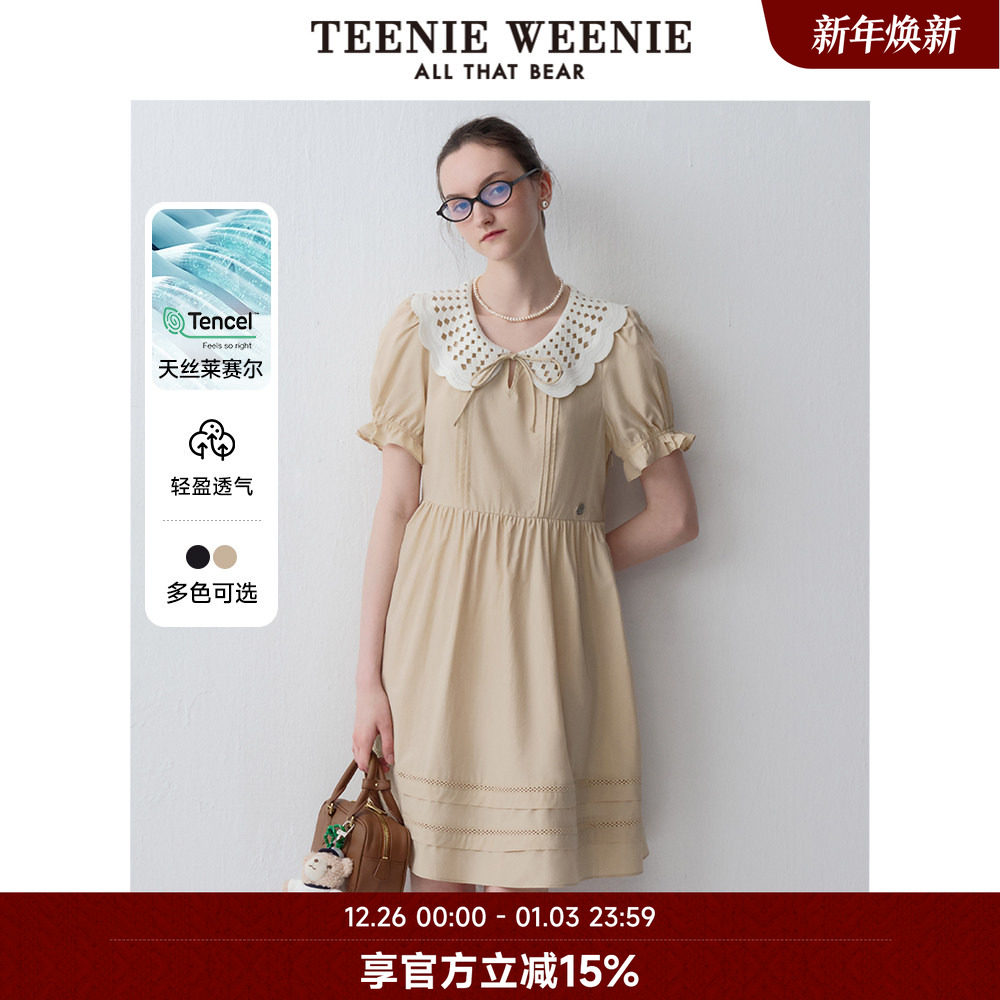【天丝+棉】TeenieWeenie小熊奥莱法式学院公主裙黑色大摆连衣裙