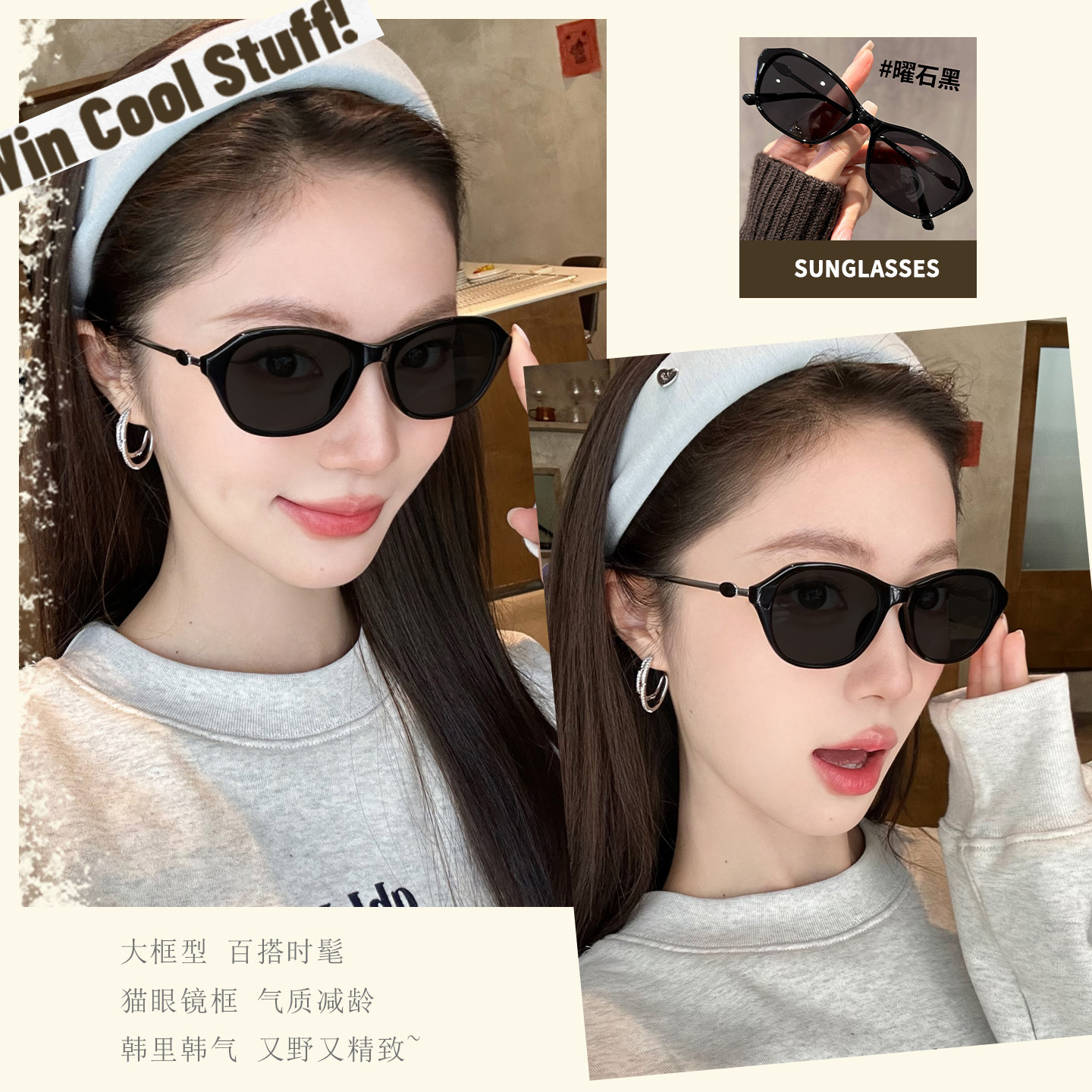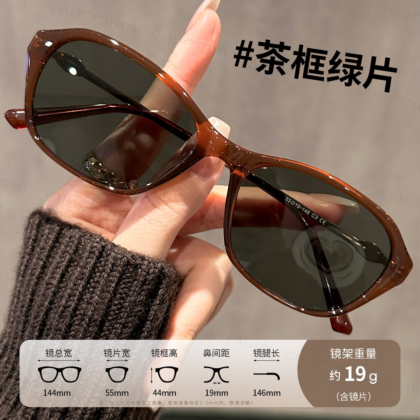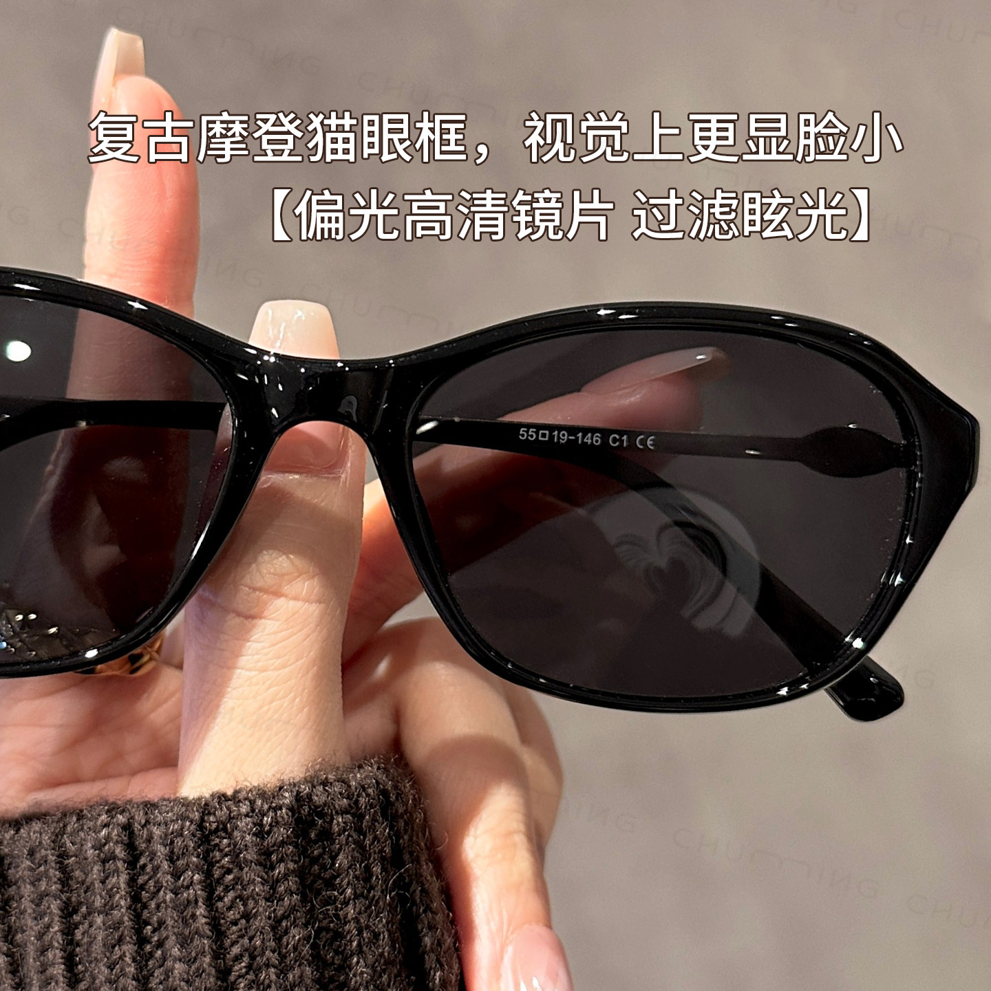 复古猫眼大框黑框墨镜女偏光运动防晒防紫外线高级感方圆脸太阳镜