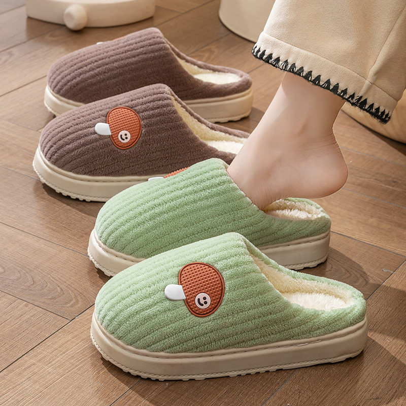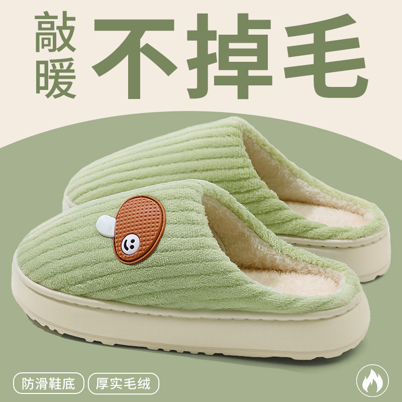红豆踩屎感棉拖鞋女士秋冬季室内家居2025新款毛绒保暖情侣棉拖男