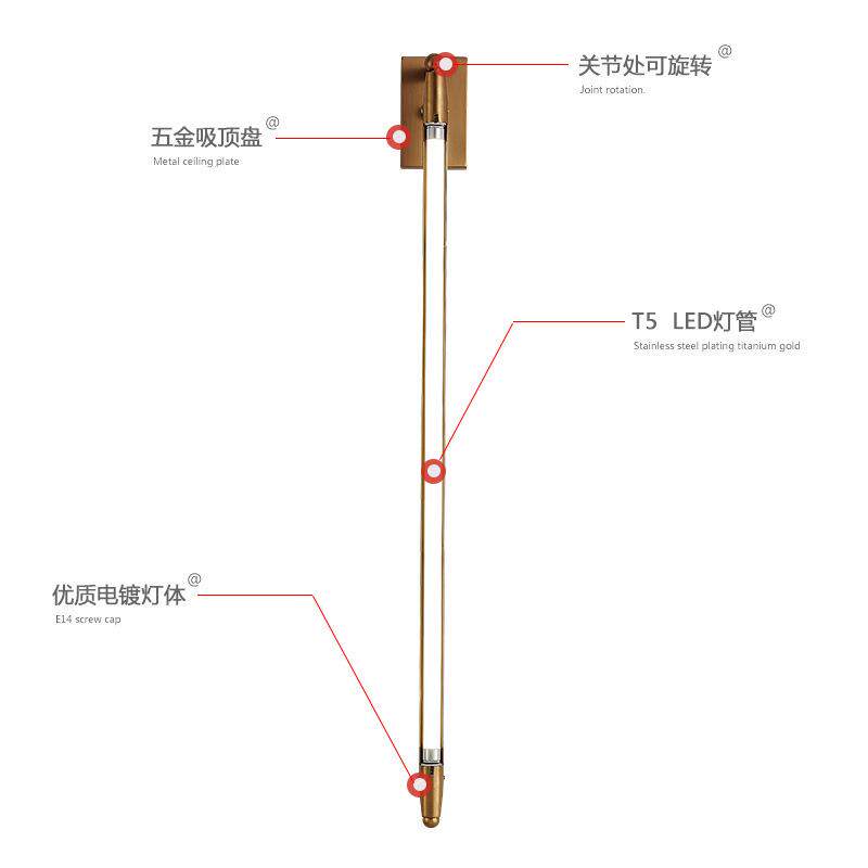 现代简约时尚客厅卧室壁灯创意长条T5管旋转灯饰酒吧餐厅氛围灯具