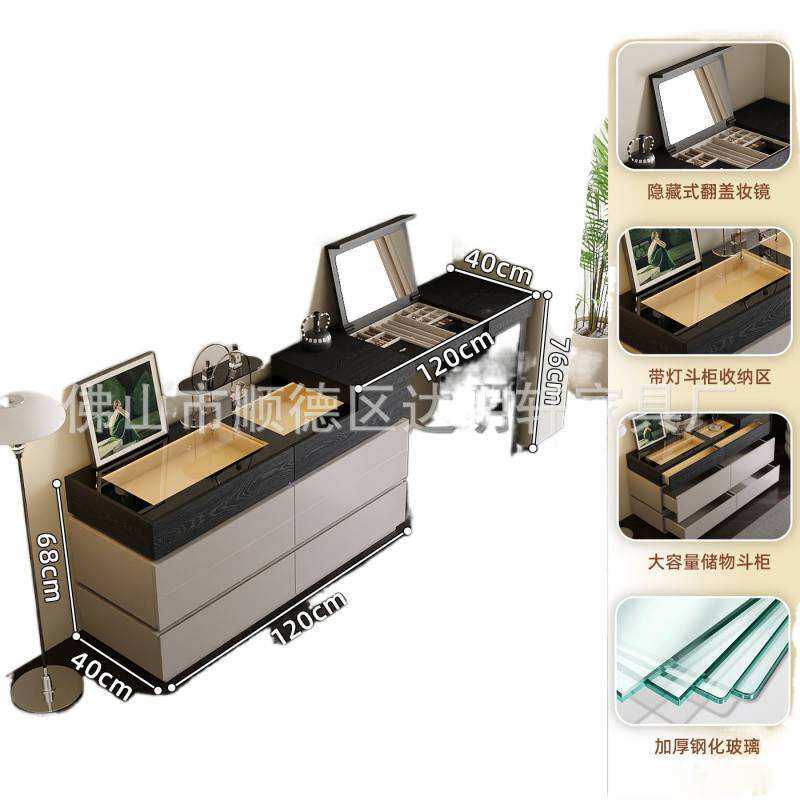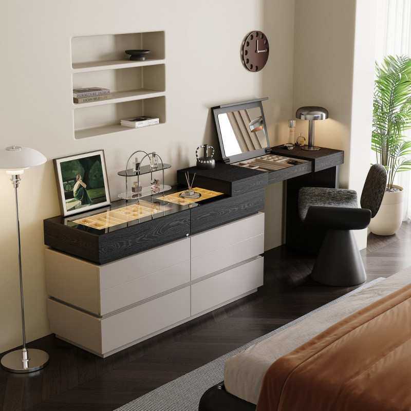 意式极简梳妆台斗柜一体柜现代卧室简约床尾高级多功能化妆桌收纳
