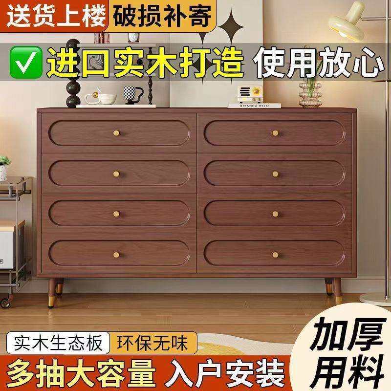 实木斗柜卧室储物柜收纳柜靠墙高端轻奢主卧床尾置物柜网红八斗橱