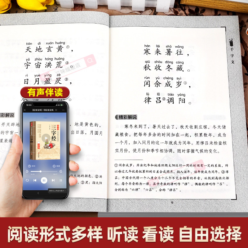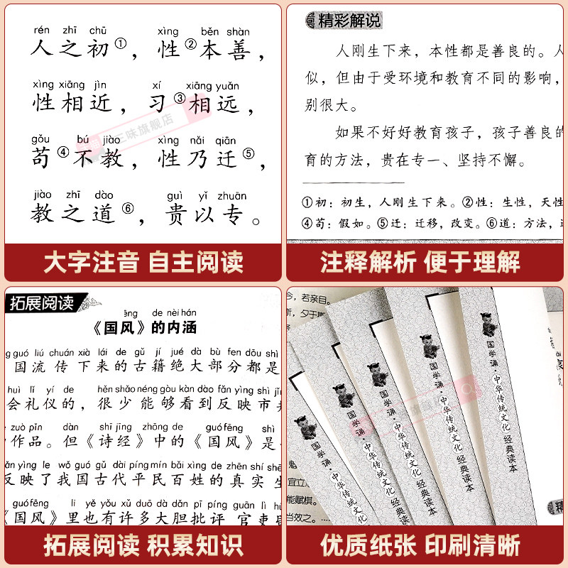 千字文正版注音版儿童国学启蒙诵读中华传统文化经典读本大字原文一二三年级小学生阅读课外书必读少儿幼儿早教故事书三字经百家姓