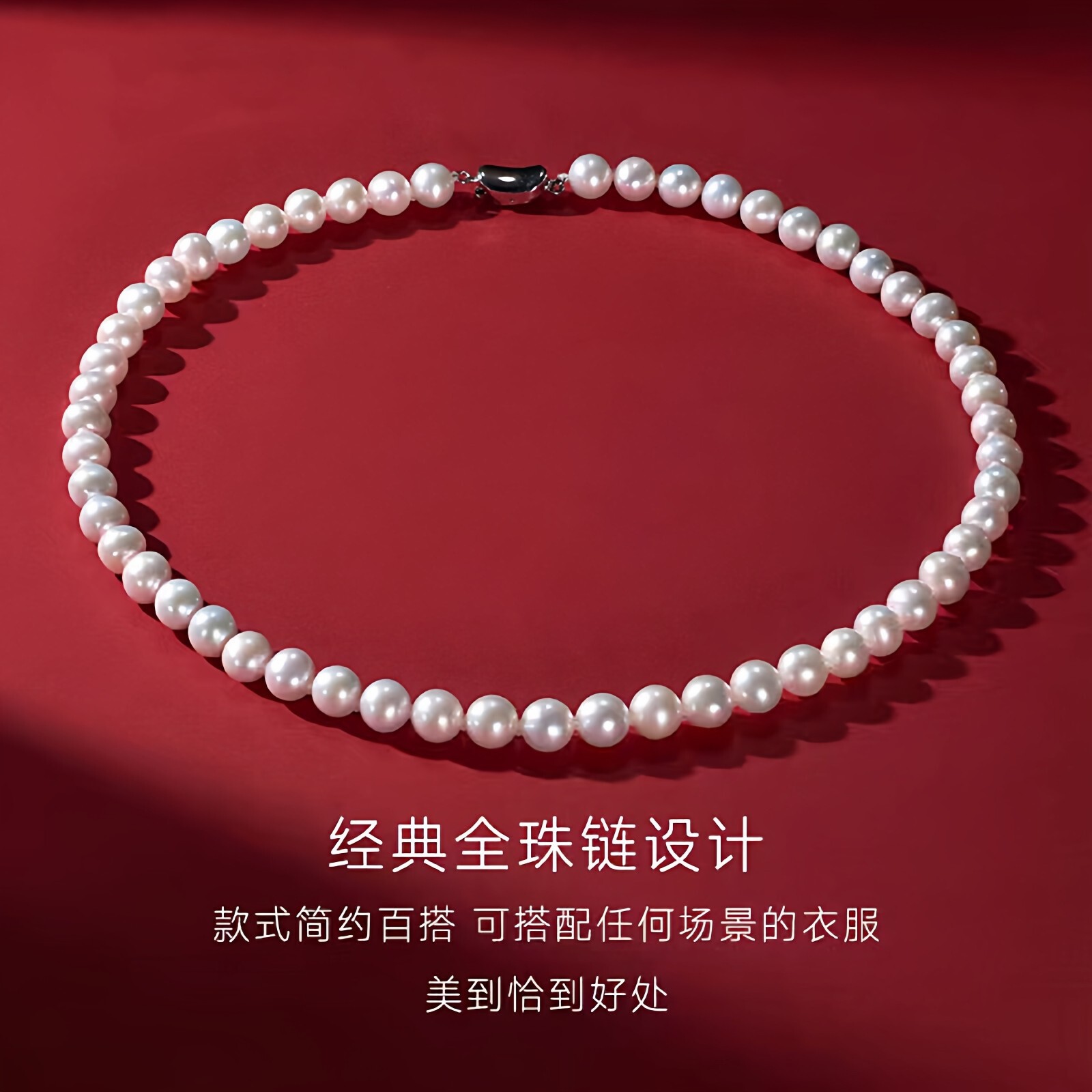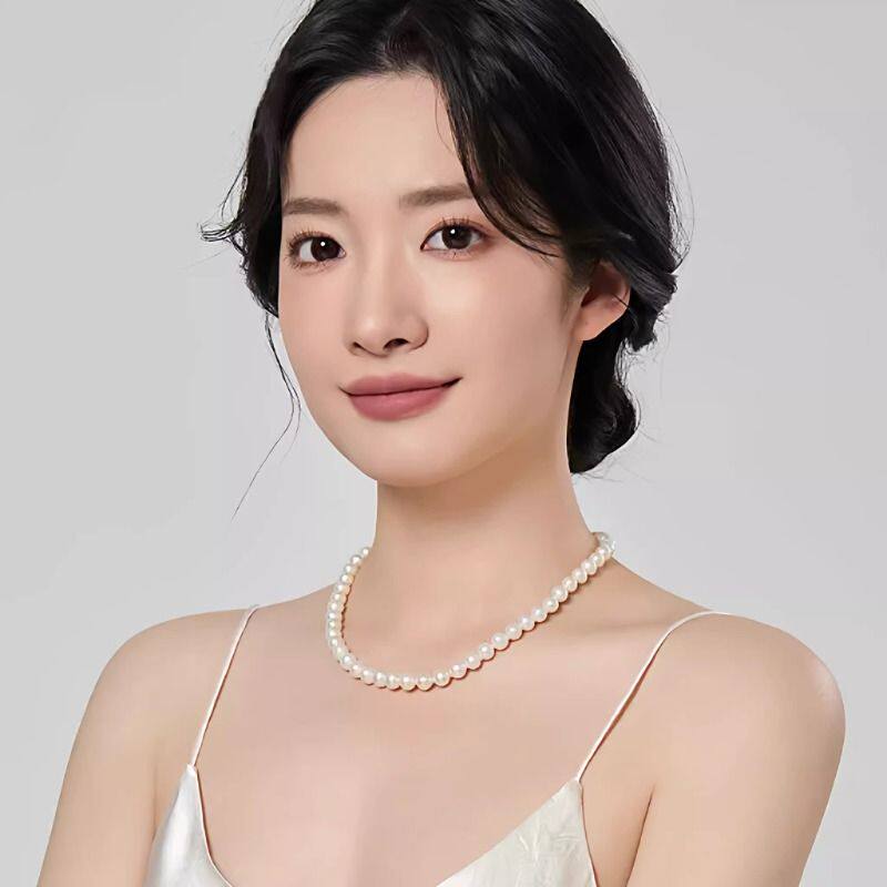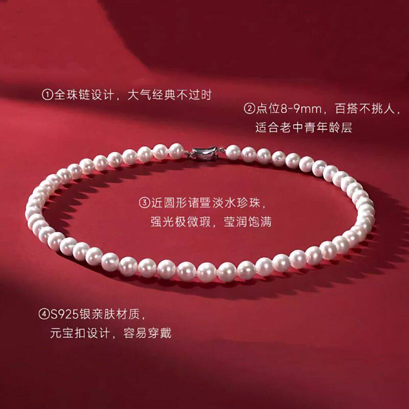诸暨淡水珍珠项链女S925银经典款全珠链近圆强光送老婆送长辈礼物