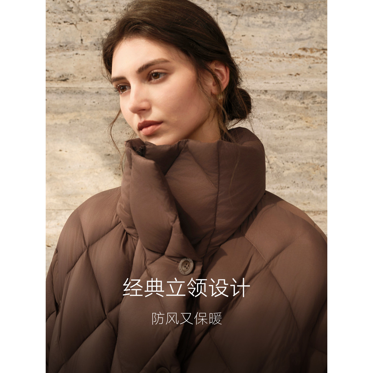 【鞠婧祎同款】鸭鸭2025年冬新款百搭短款女士纯色立领羽绒服外套