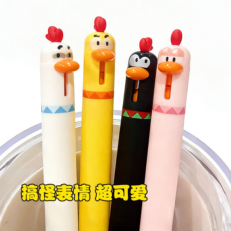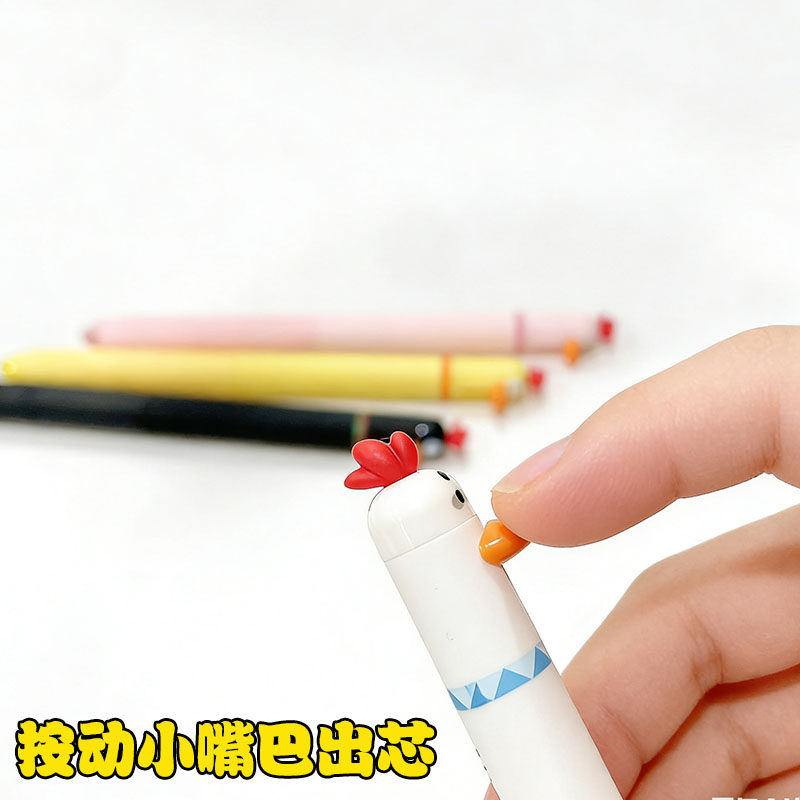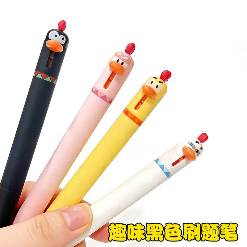 卡通小鸡造型按动中性笔0.5mm黑色高颜值学生刷题笔可爱创意文具