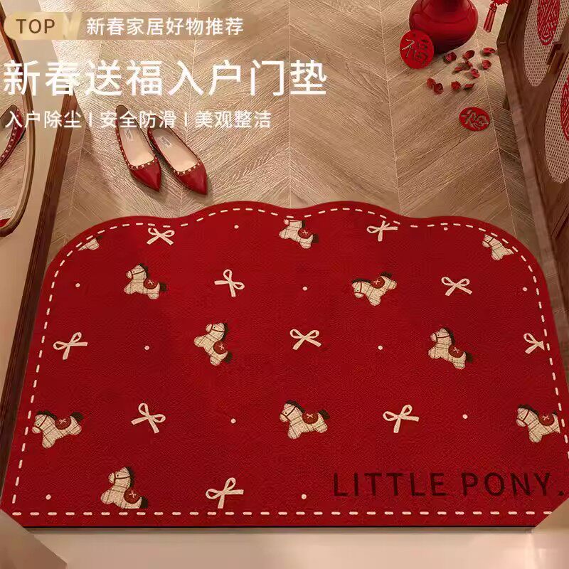 马年红色入户门地垫2026新款喜庆防滑脚垫玄关大门口地毯硅藻泥