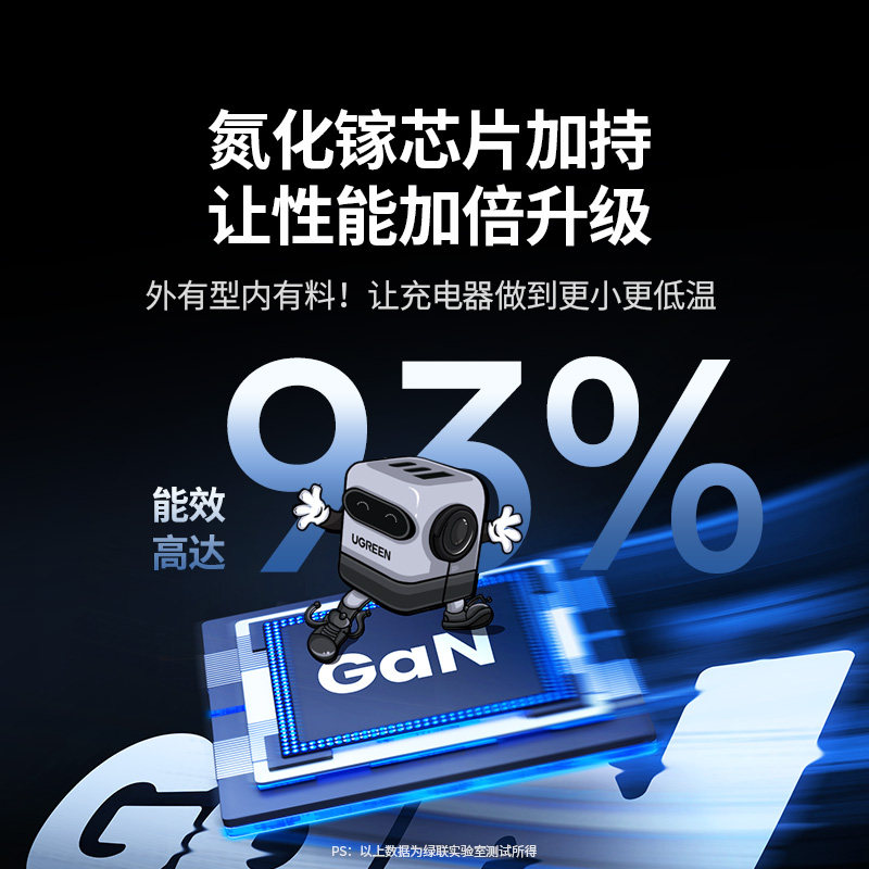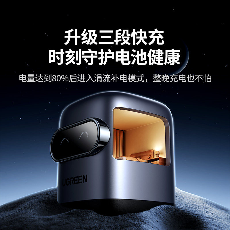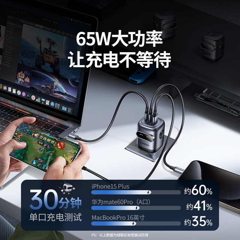 【国家3C认证】绿联Q湃机器人65W氮化镓充电器PD快充头适用苹果iPhone华为小米手机笔记本电脑多口桌面充电站