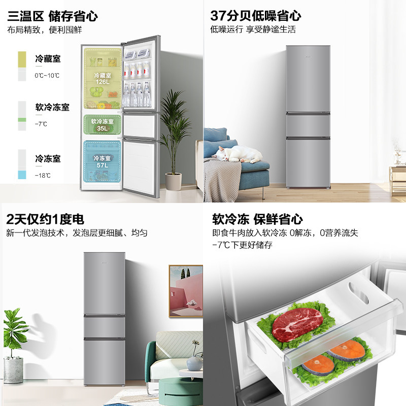 政府补贴海尔出品统帅三开门251L一级风冷无霜租房小型家用电冰箱