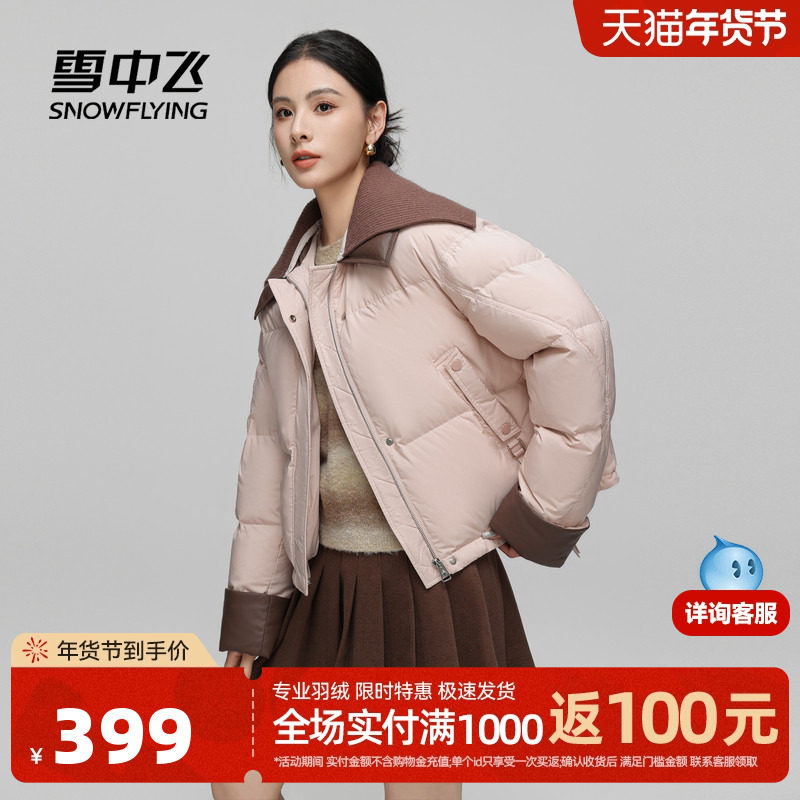 雪中飞2025冬新款女士短款羽绒服可拆针织翻领时尚简约柔软舒适
