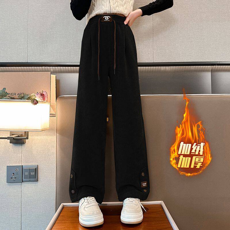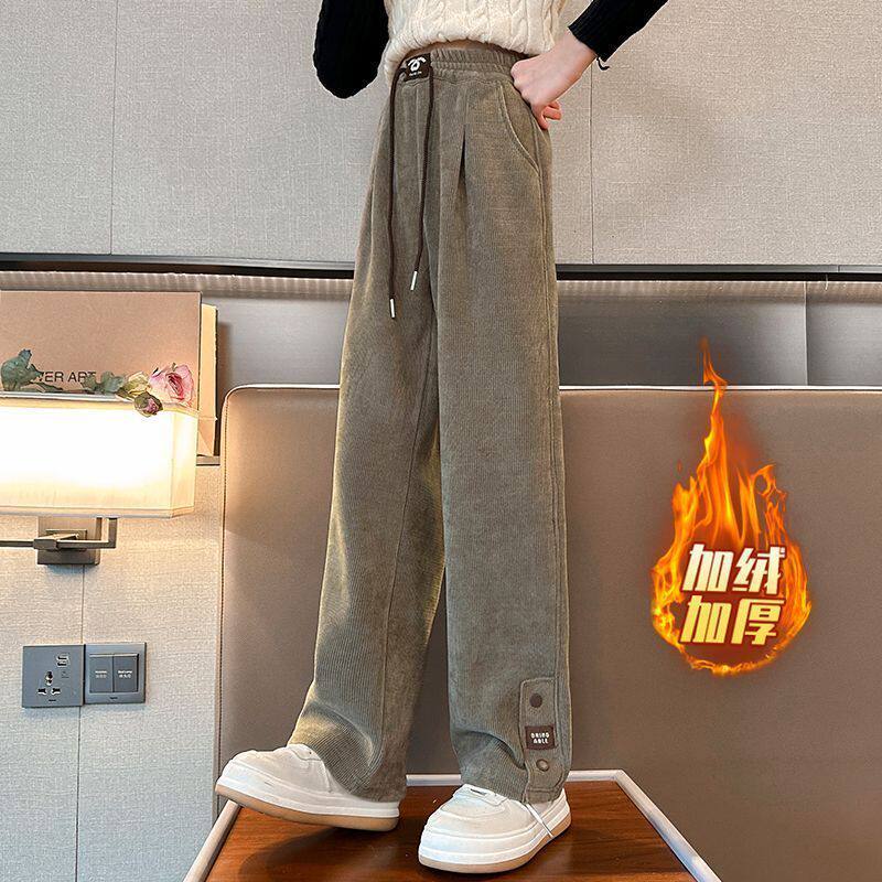女童加绒裤子秋冬2025新款儿童阔腿裤中大童冬季一体绒直筒长裤潮