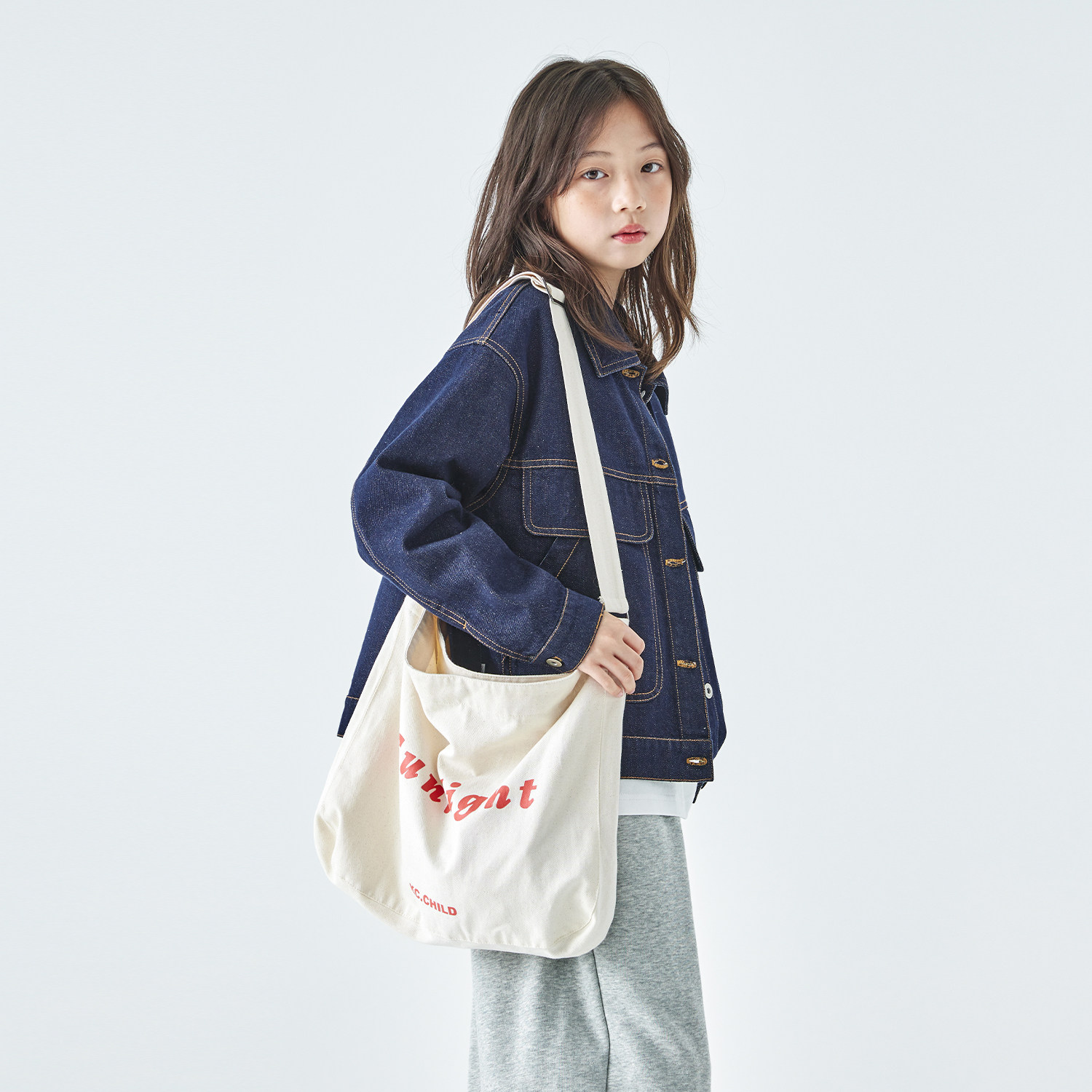 棵初2025年秋冬款亲子中大女童字母斜跨帆布包包带可调节单肩包