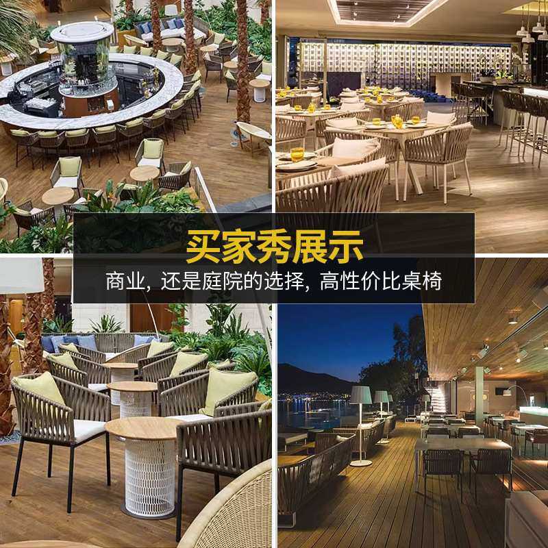 桌椅拉绳椅防晒休闲家具庭院餐桌椅咖啡奶茶店柚木色桌庭院商用