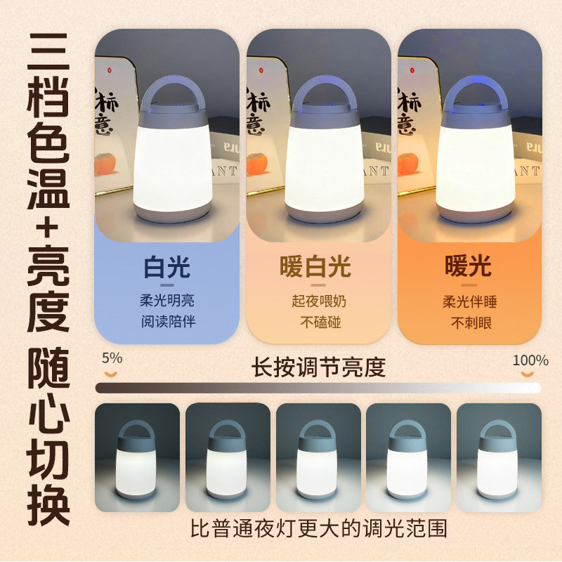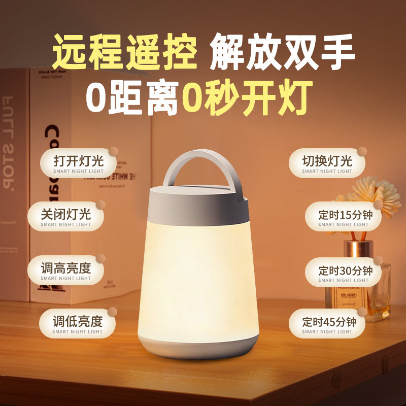 遥控小夜灯卧室睡眠灯手提式台灯2025新款充电床头灯婴儿喂奶护眼