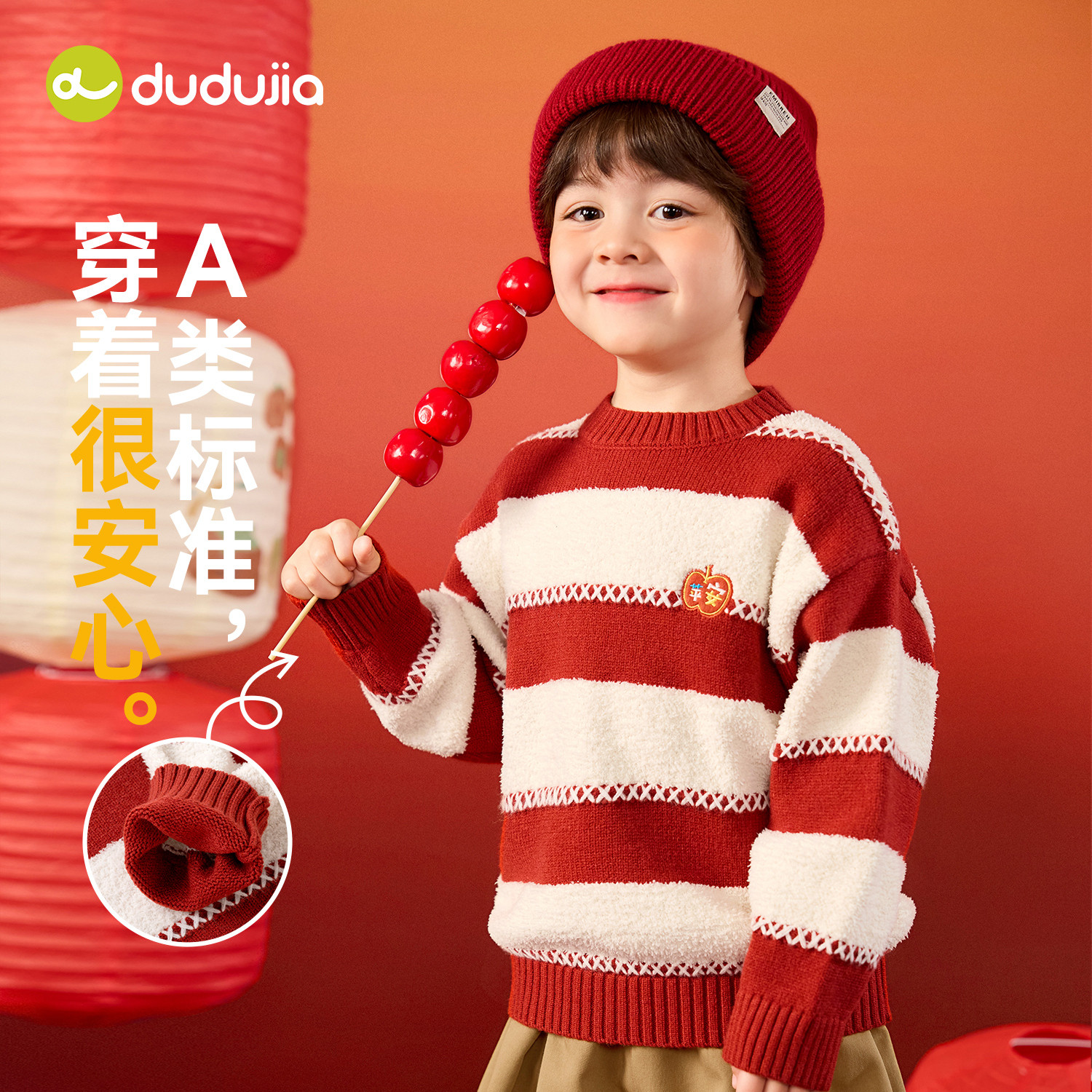 嘟嘟家男童拜年服新年唐装毛衣冬季宝宝针织女童冬季上衣宝宝冬装