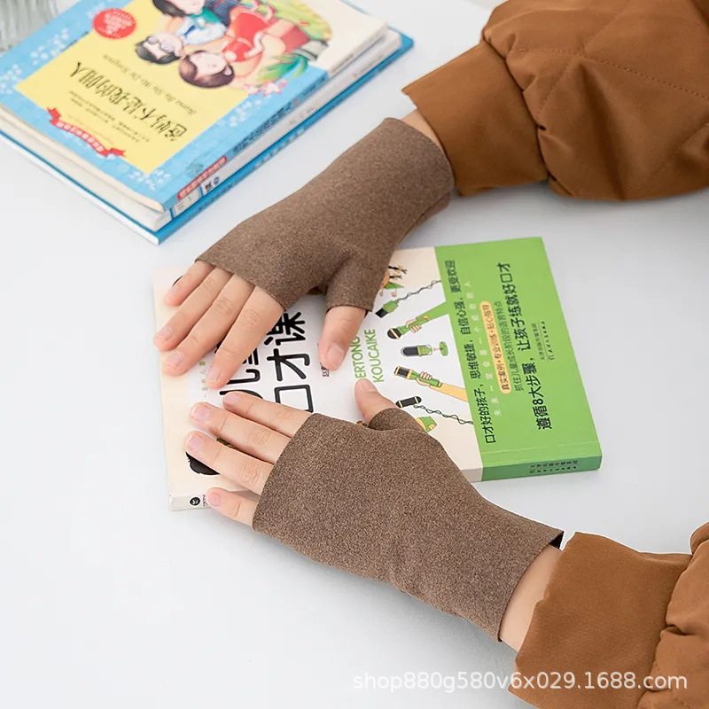 儿童手套冬季女童可爱德绒保暖加厚写字男童小学生半指女写作业