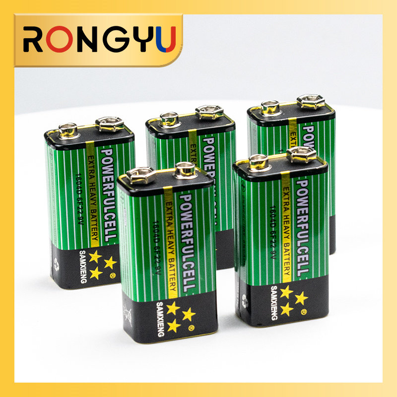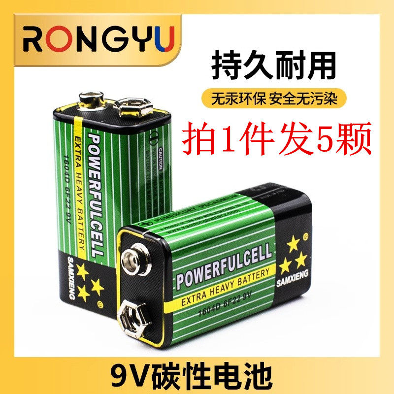 9V电池 6F22叠层方形碳性烟雾报警器话筒万用表电池九伏(5颗)