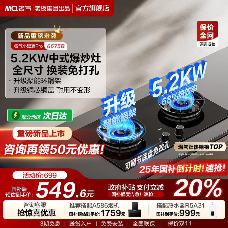 [新品]名气天然气燃气灶煤气灶双灶家用液化气灶台老板出品6675B