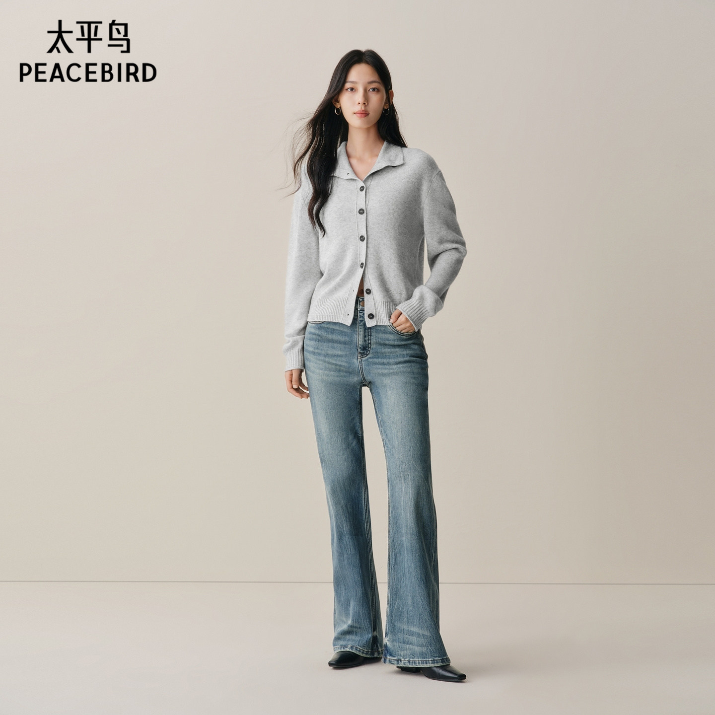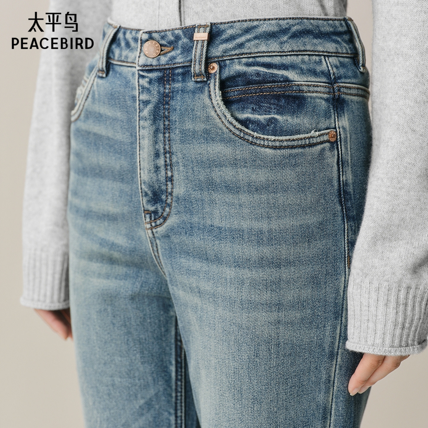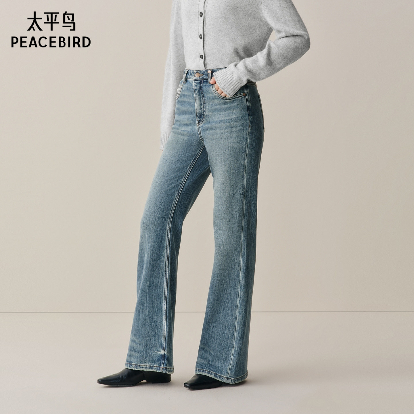 【商场同款】太平鸟2025年冬季新款磨毛高腰微喇牛仔裤A1HAF4360