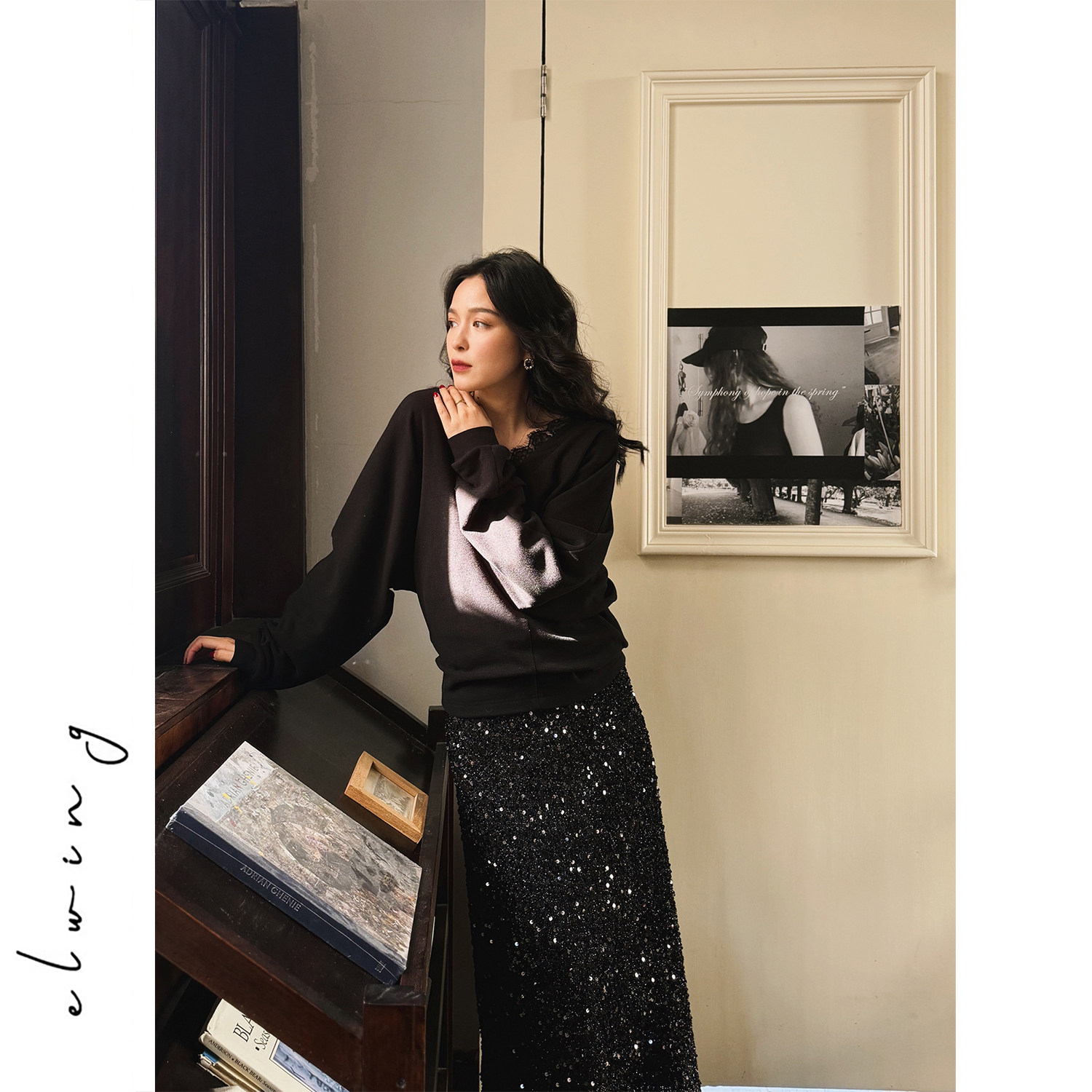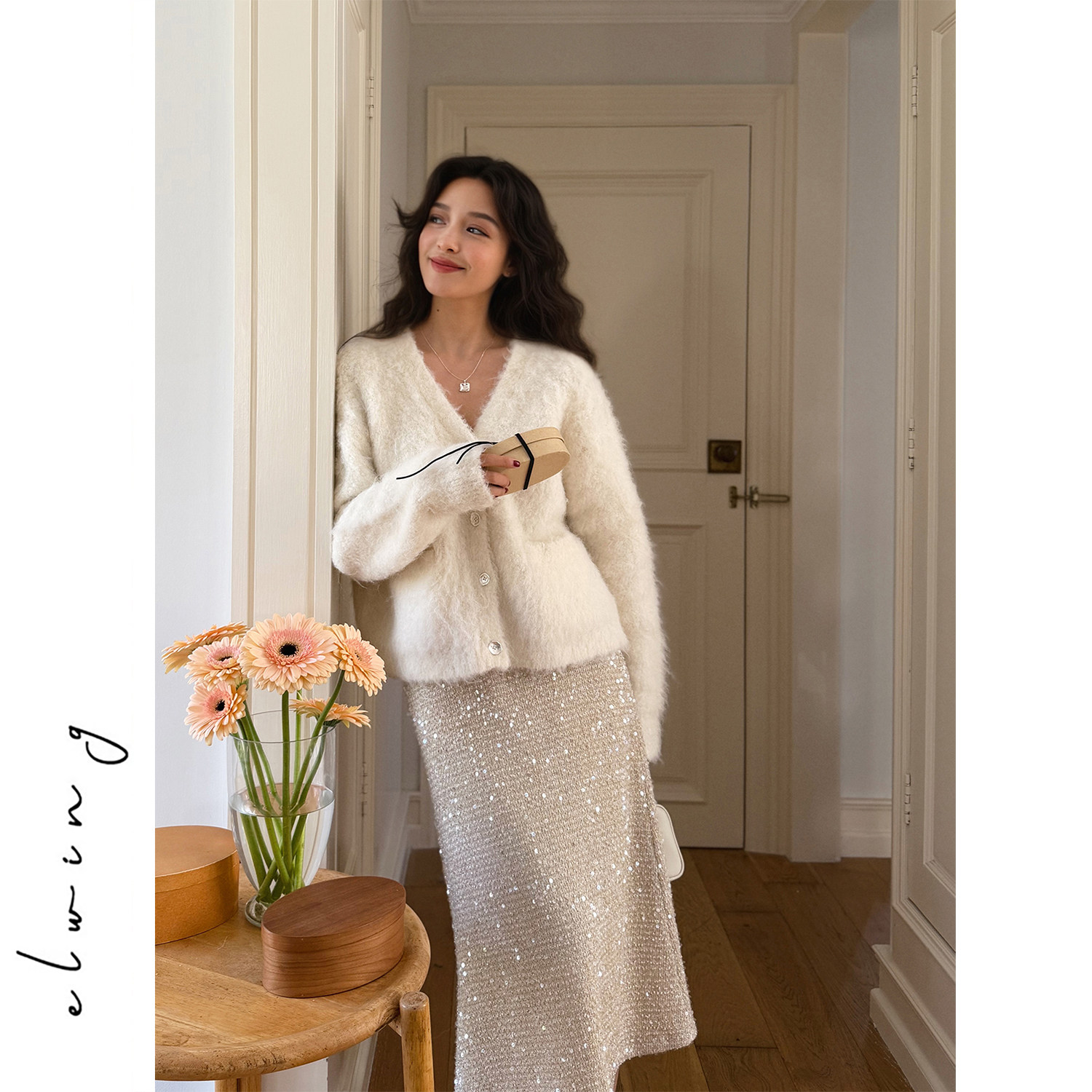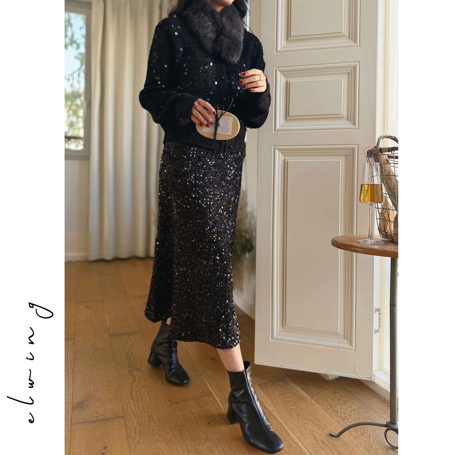 Elwing原创新年氛围感璀璨复古碎金亮片鱼尾半身裙